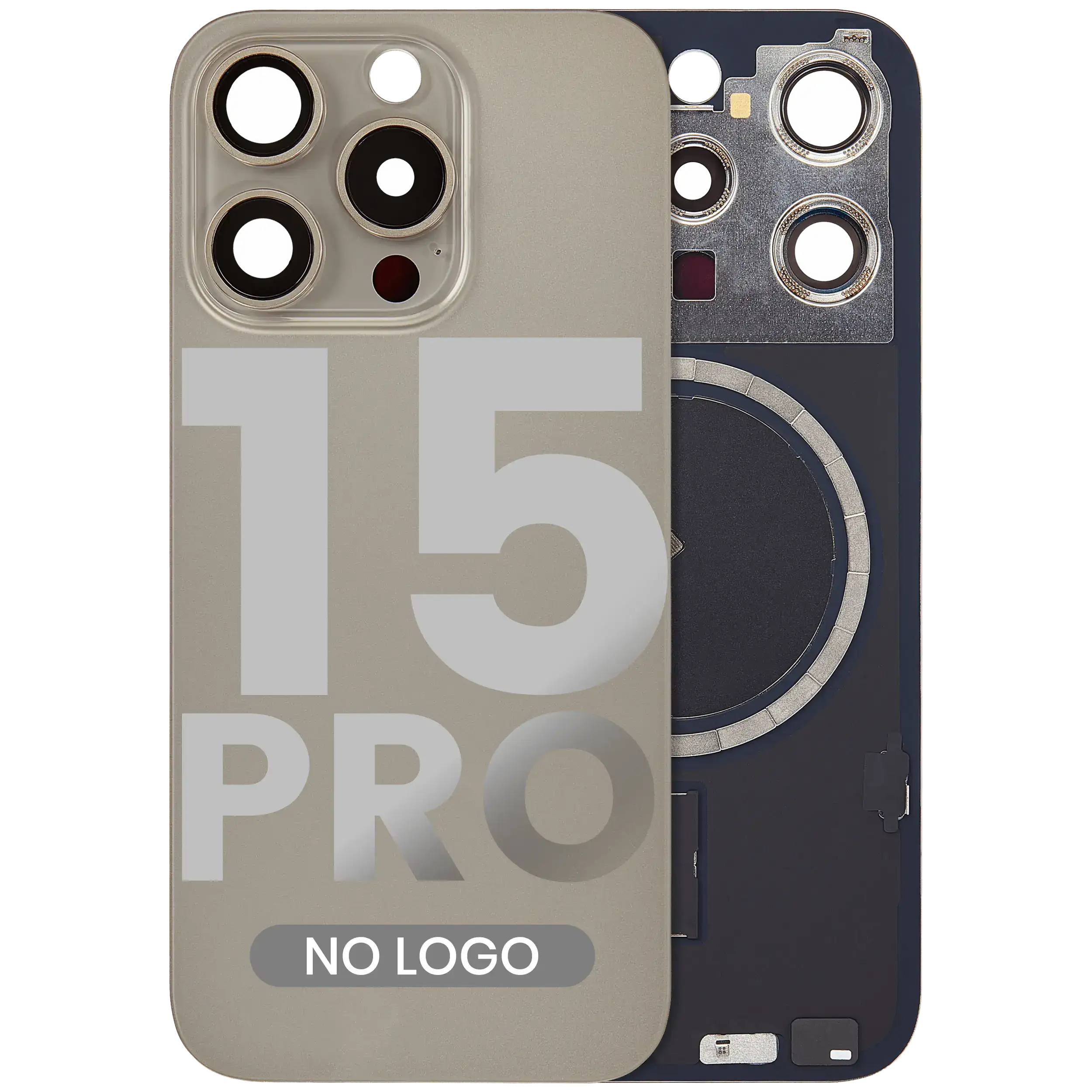 Back Glass With Steel Plate With MagSafe Magnet Pre-Installed iPhone 15 Pro (No Logo) (Natural Titanium)