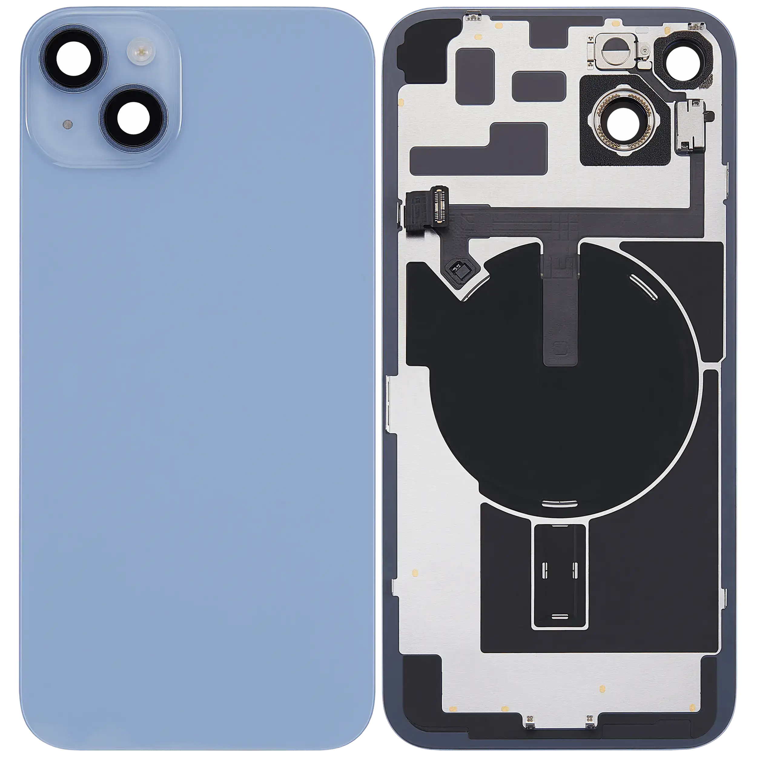 Back Glass With Steel Plate With Wireless NFC Charging MagSafe Magnet & Flashlight Flex iPhone 14 Plus (Used OEM Pull: Grade B) (Blue)