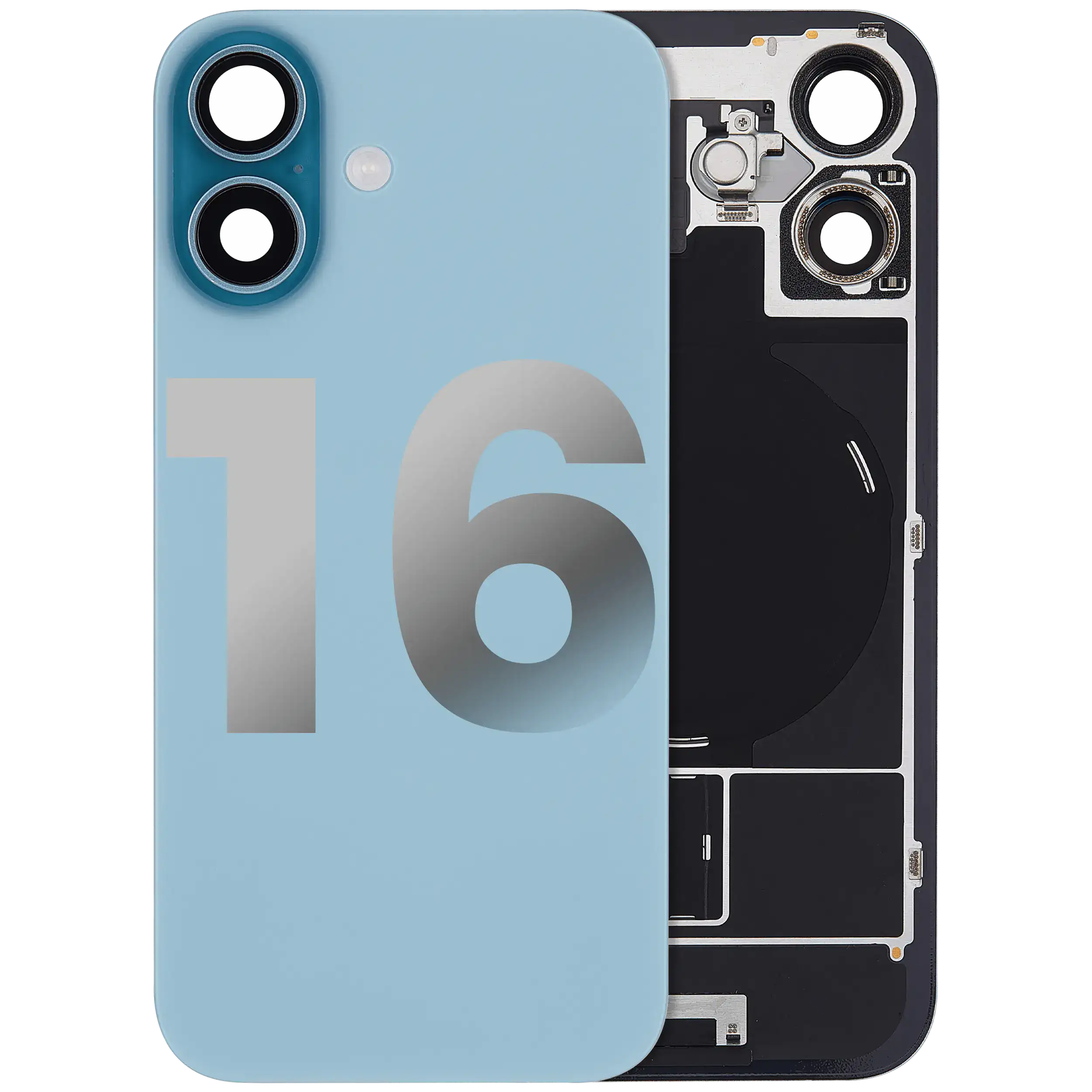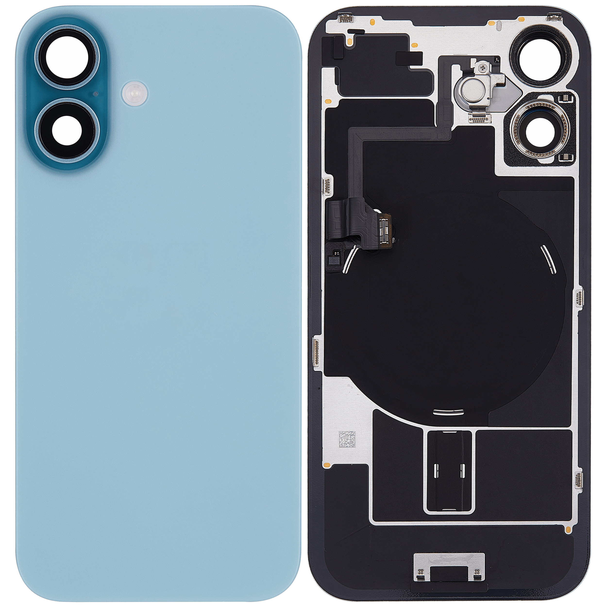Back Glass With Steel Plate With Wireless NFC Charging MagSafe Magnet & Flashlight Flex iPhone 16 (Used OEM Pull: Grade B) (Teal)