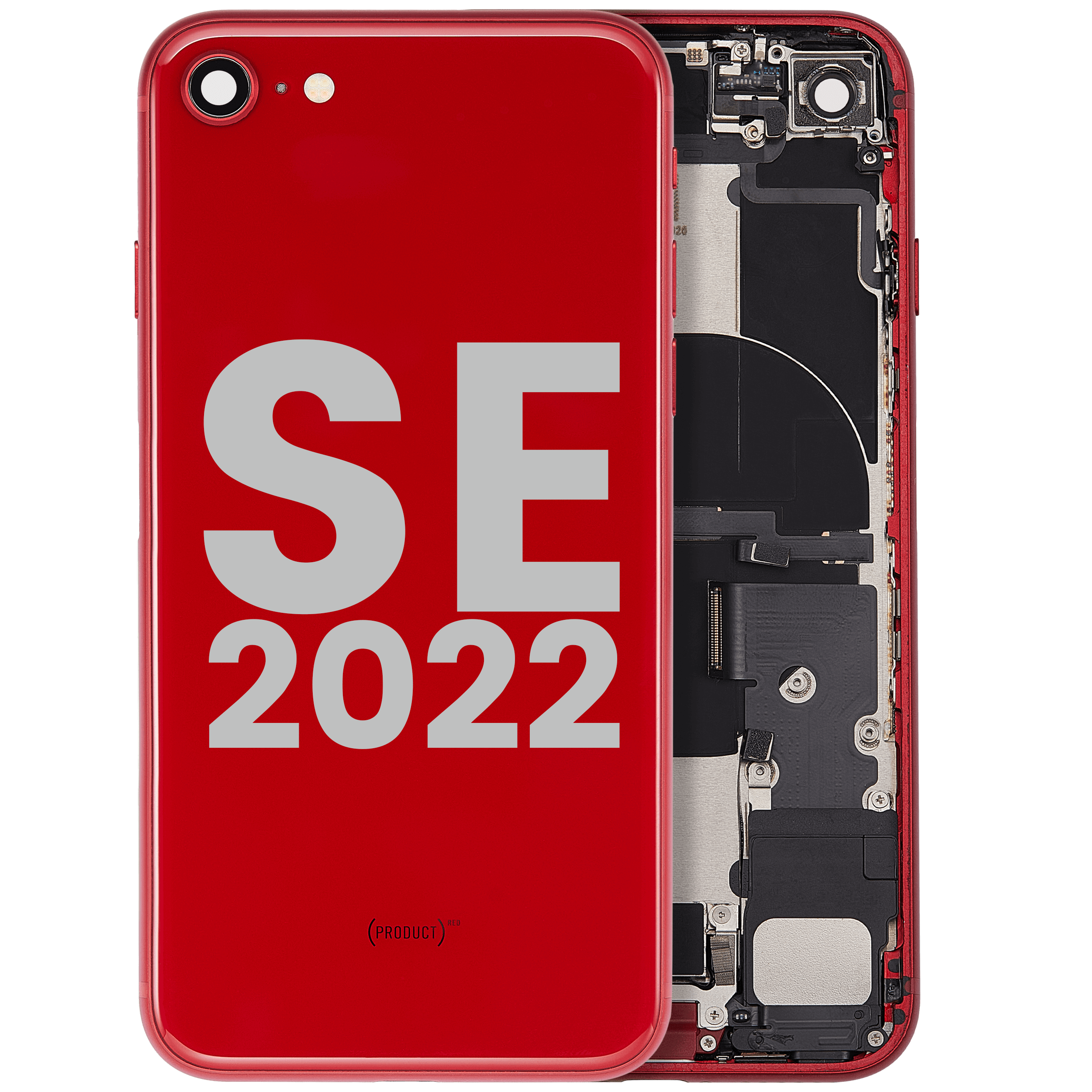 Back Housing W/ Charging Port Flex and Small Components Pre-Installed For iPhone SE (2022) (Used OEM Pull: Grade C) (Red)