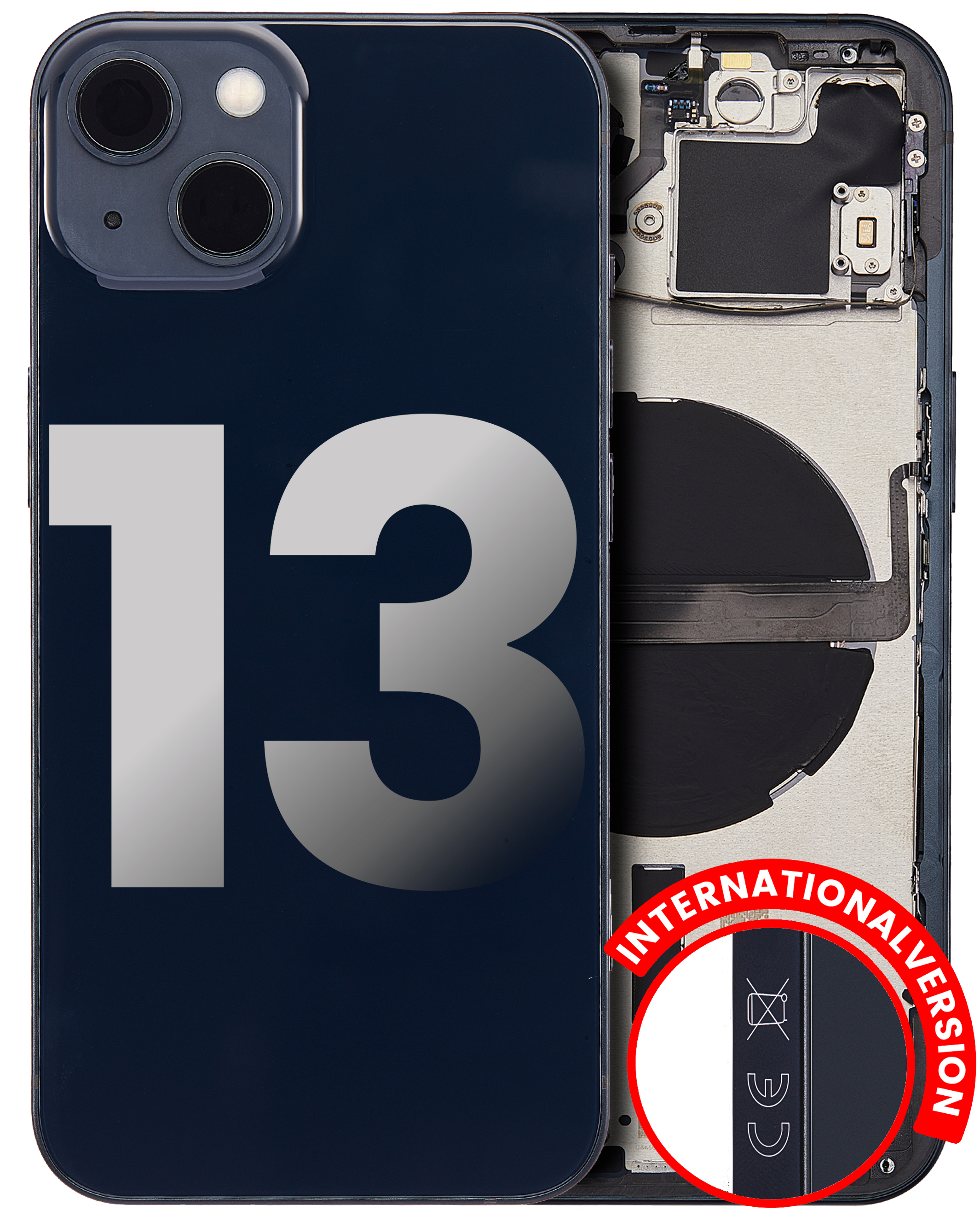 • Used OEM Pull Back Housing W/ Small Components Pre-Installed for iPhone 13 (International Version) (Used OEM Pull: Grade B) (Midnight).