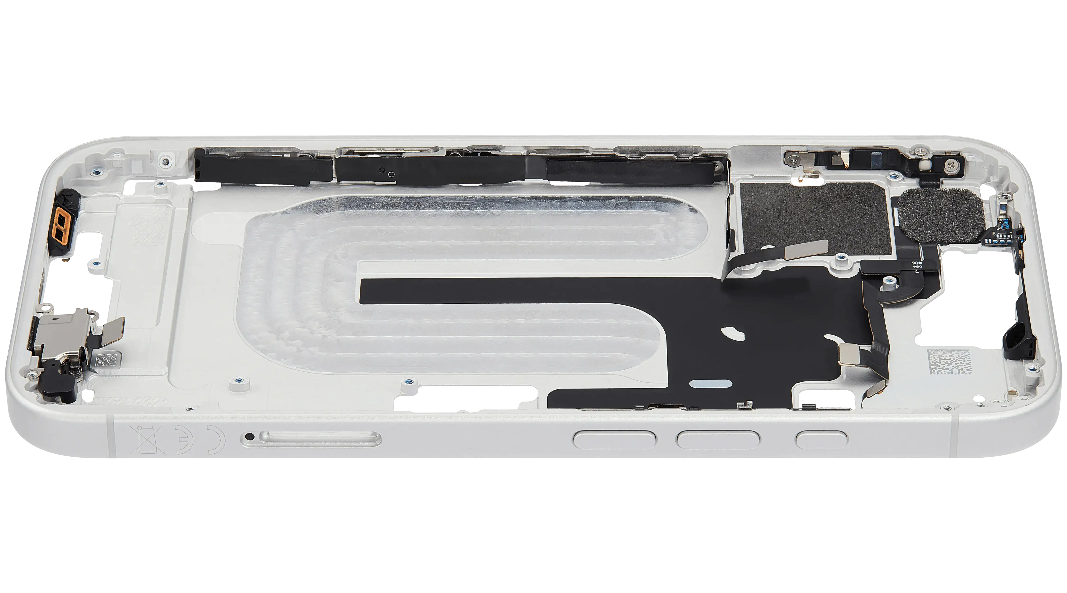 Mid-Frame Housing W/ Small Parts For iPhone 16 (EU / Global Version) (Used OEM Pull: Grade C) (White)
