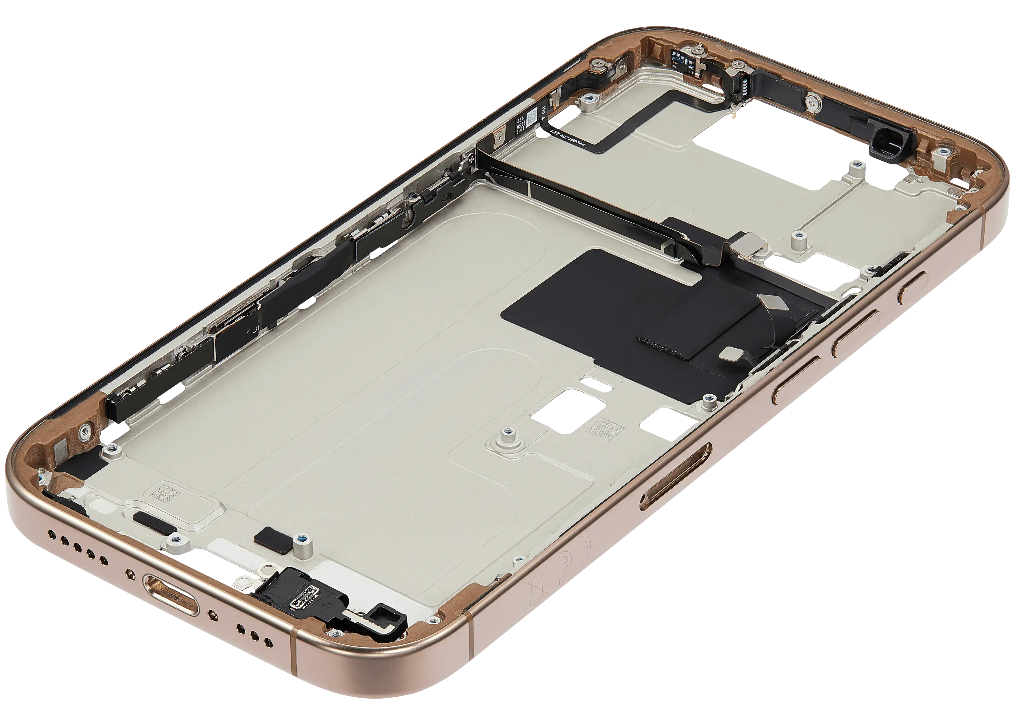 Mid-Frame Housing W/ Small Parts For iPhone 16 Pro (EU / Global Version) (Used OEM Pull: Grade B) (Desert Titanium)