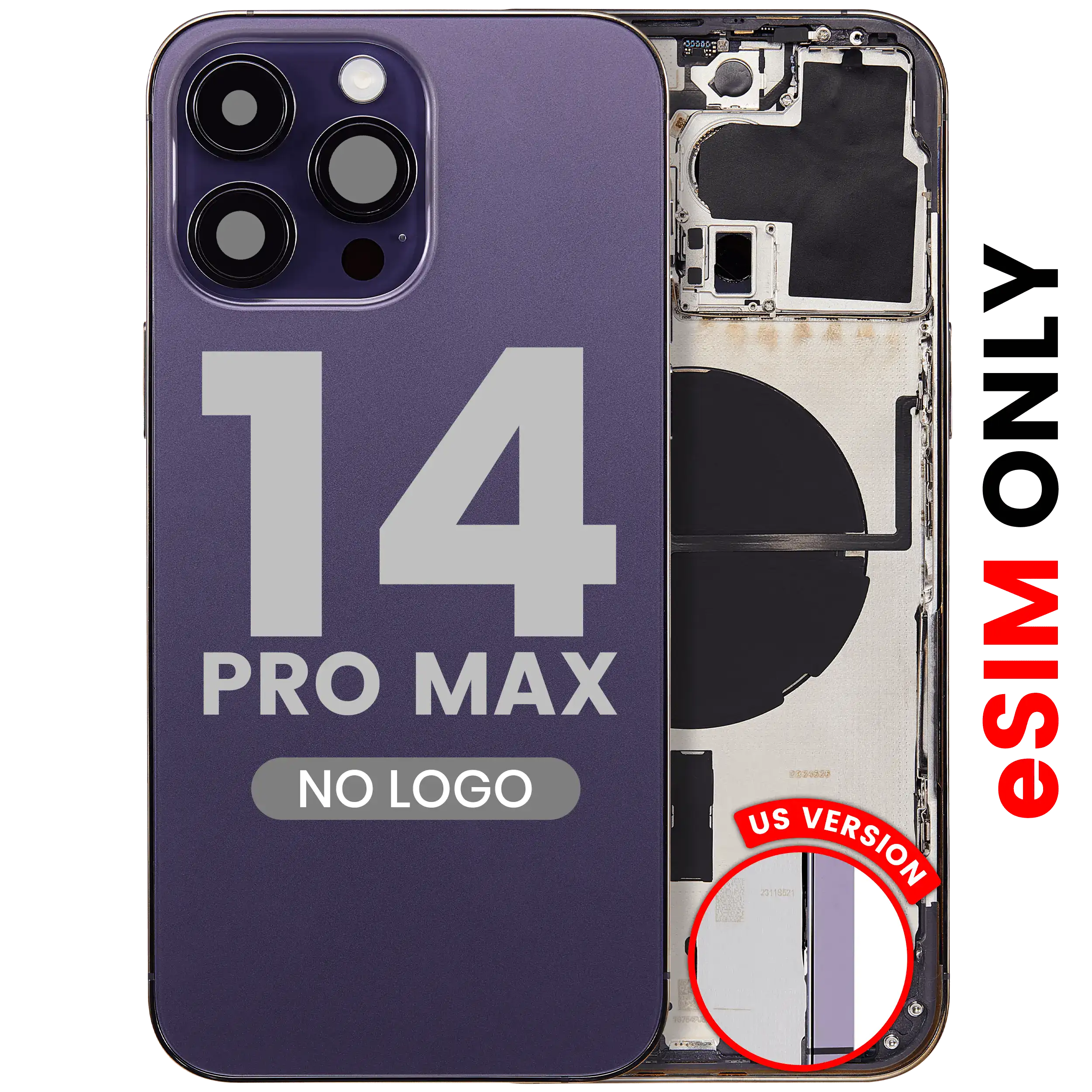• High quality Back housing for iPhone 14 Pro Max w/ small components pre-installed (U.S Version) (Aftermarket Plus) (Deep Purple).