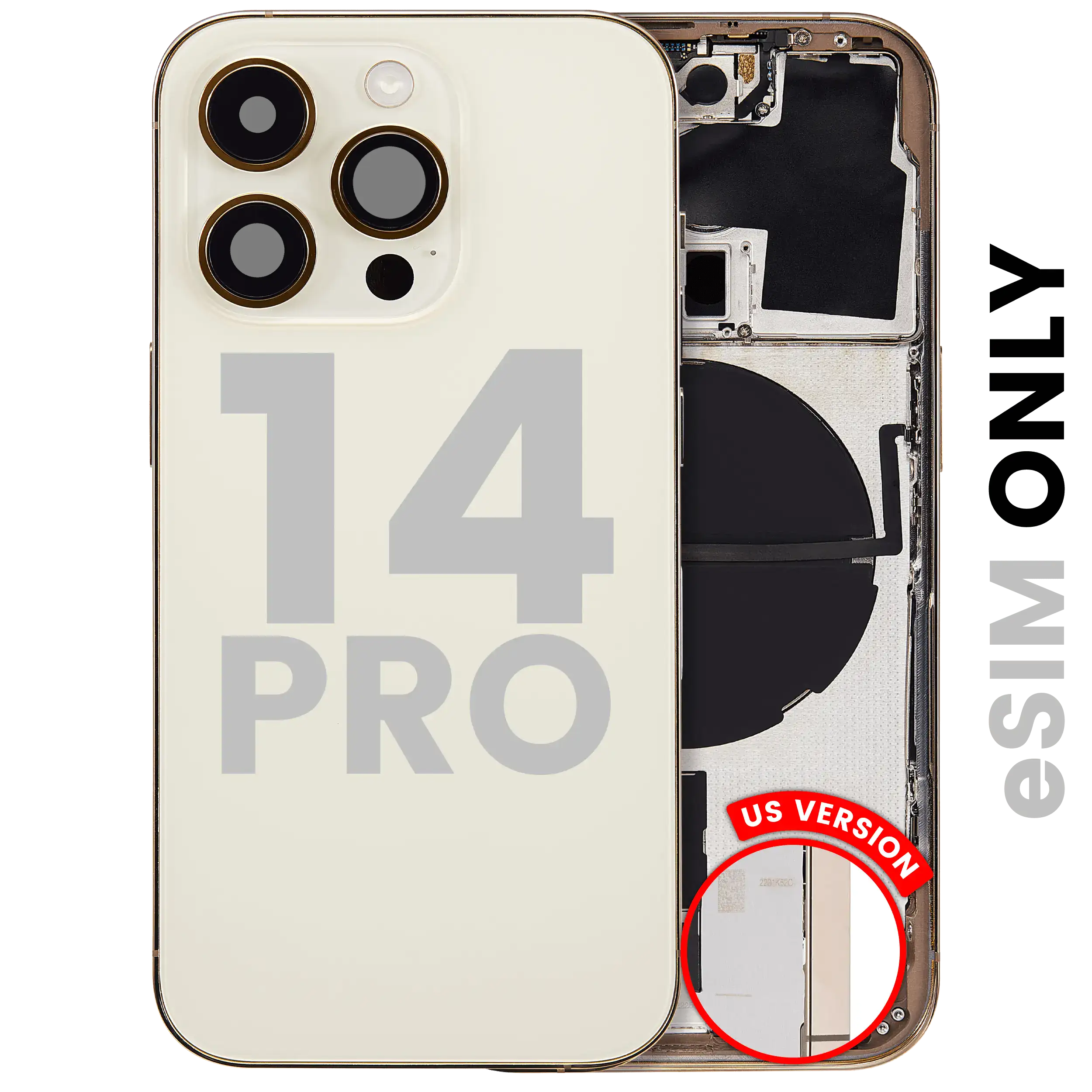 • Used OEM Pull Back Housing W/ Small Components Pre-Installed for iPhone 14 Pro (U.S Version) (Used OEM Pull: Grade A) (Gold).