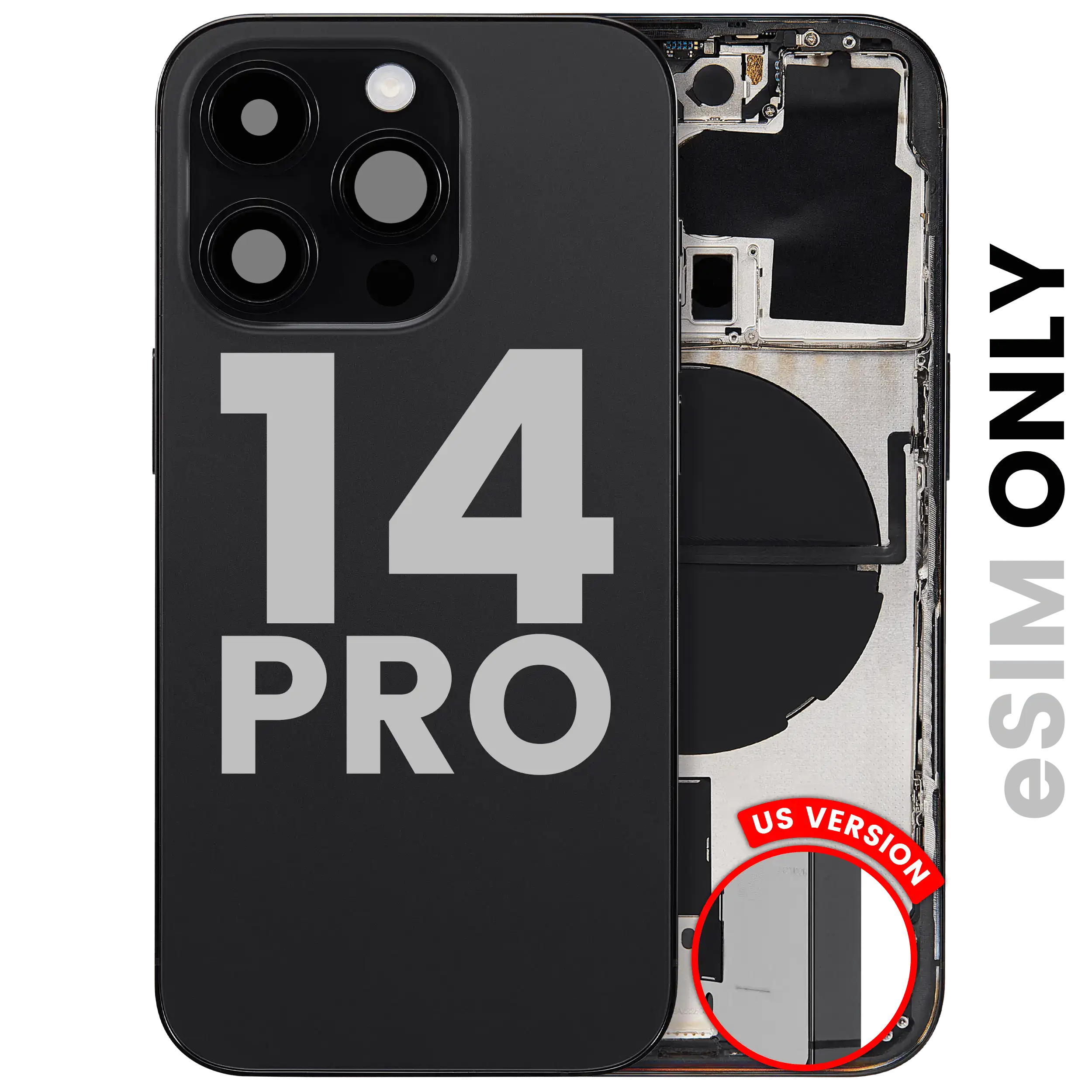 • Superb quality Back Housing W/ Small Components Pre-Installed for iPhone 14 Pro (U.S Version) (Used OEM Pull: Grade C) (Space Black).