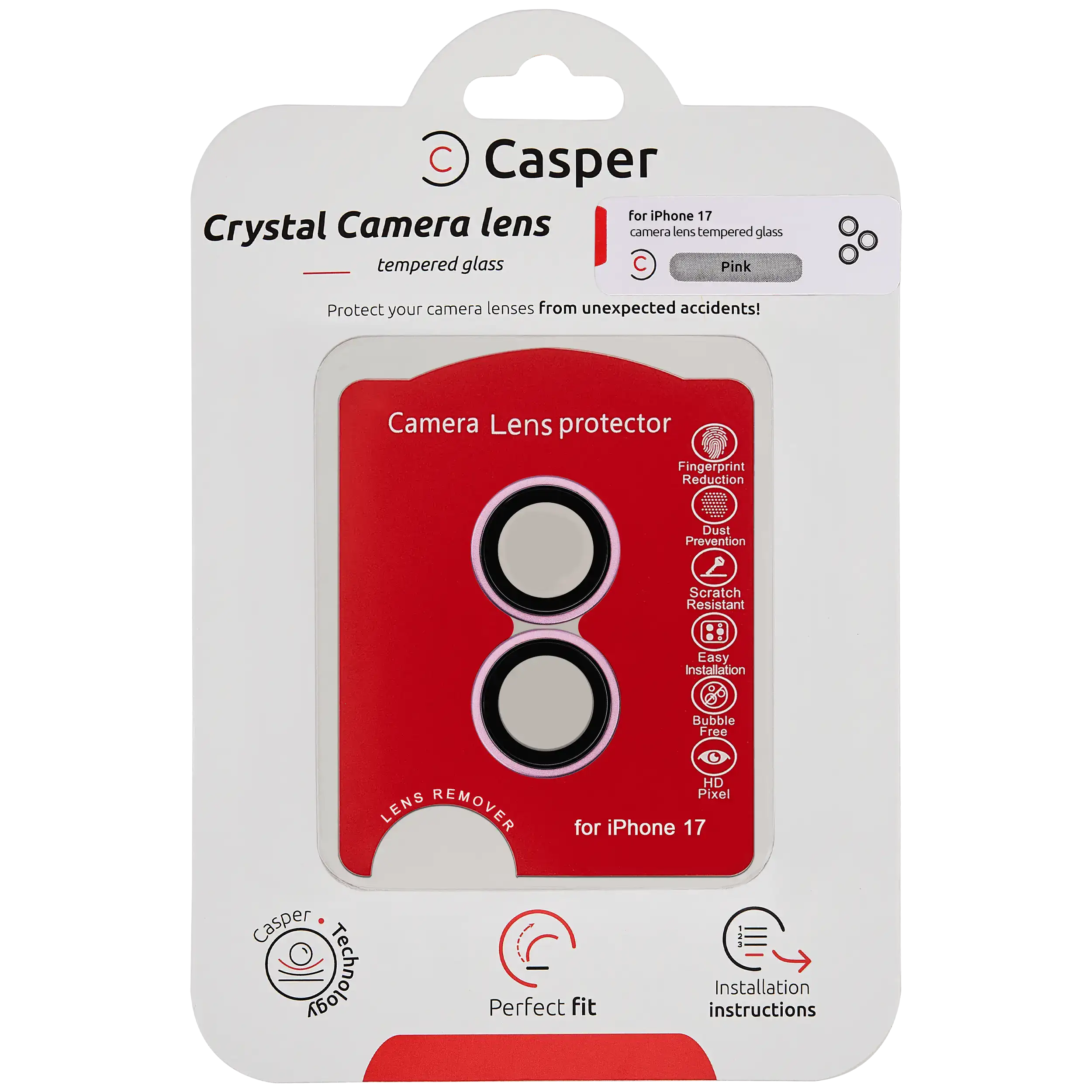 Casper Camera Lens Protector For iPhone 17 (Pink) (Clear)