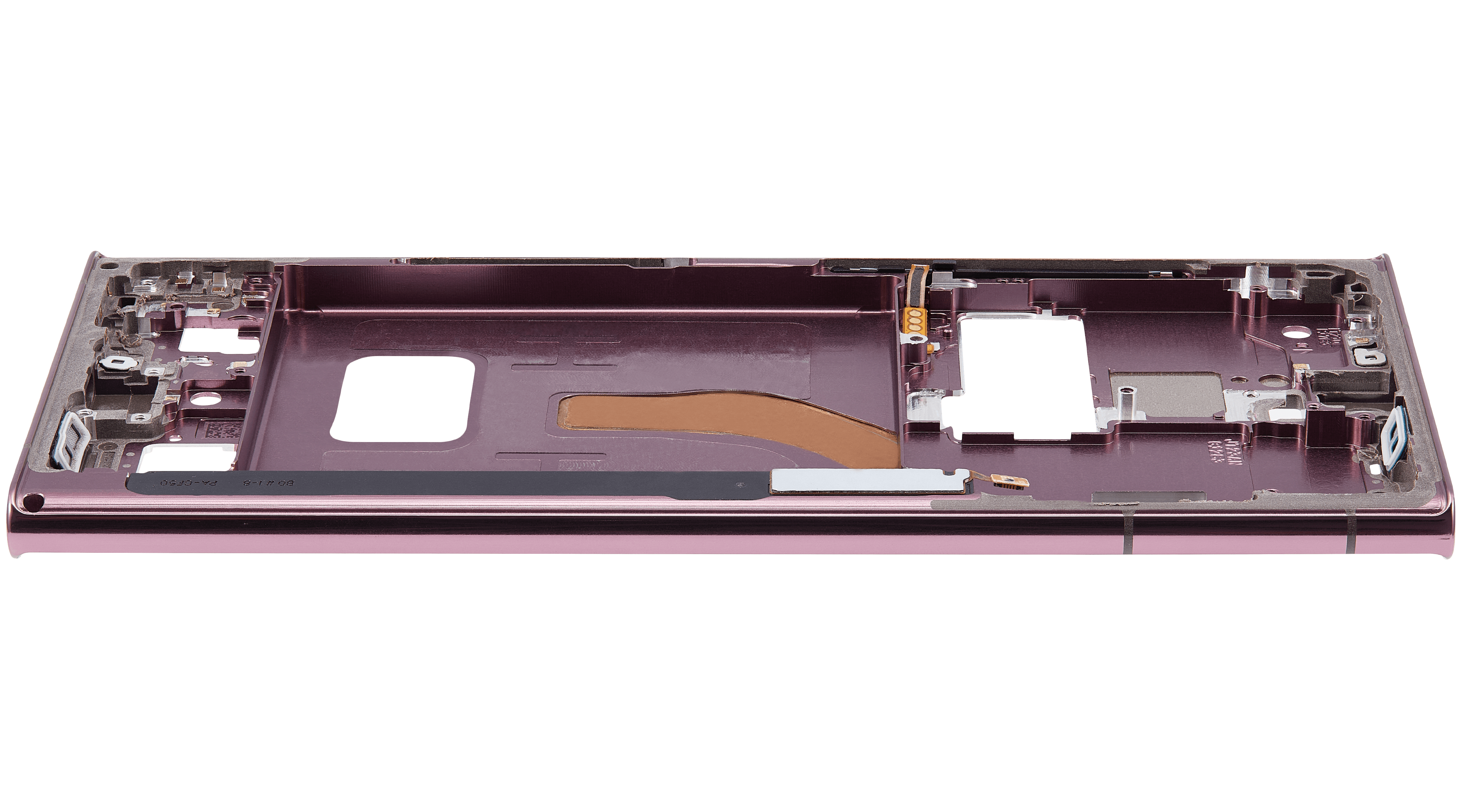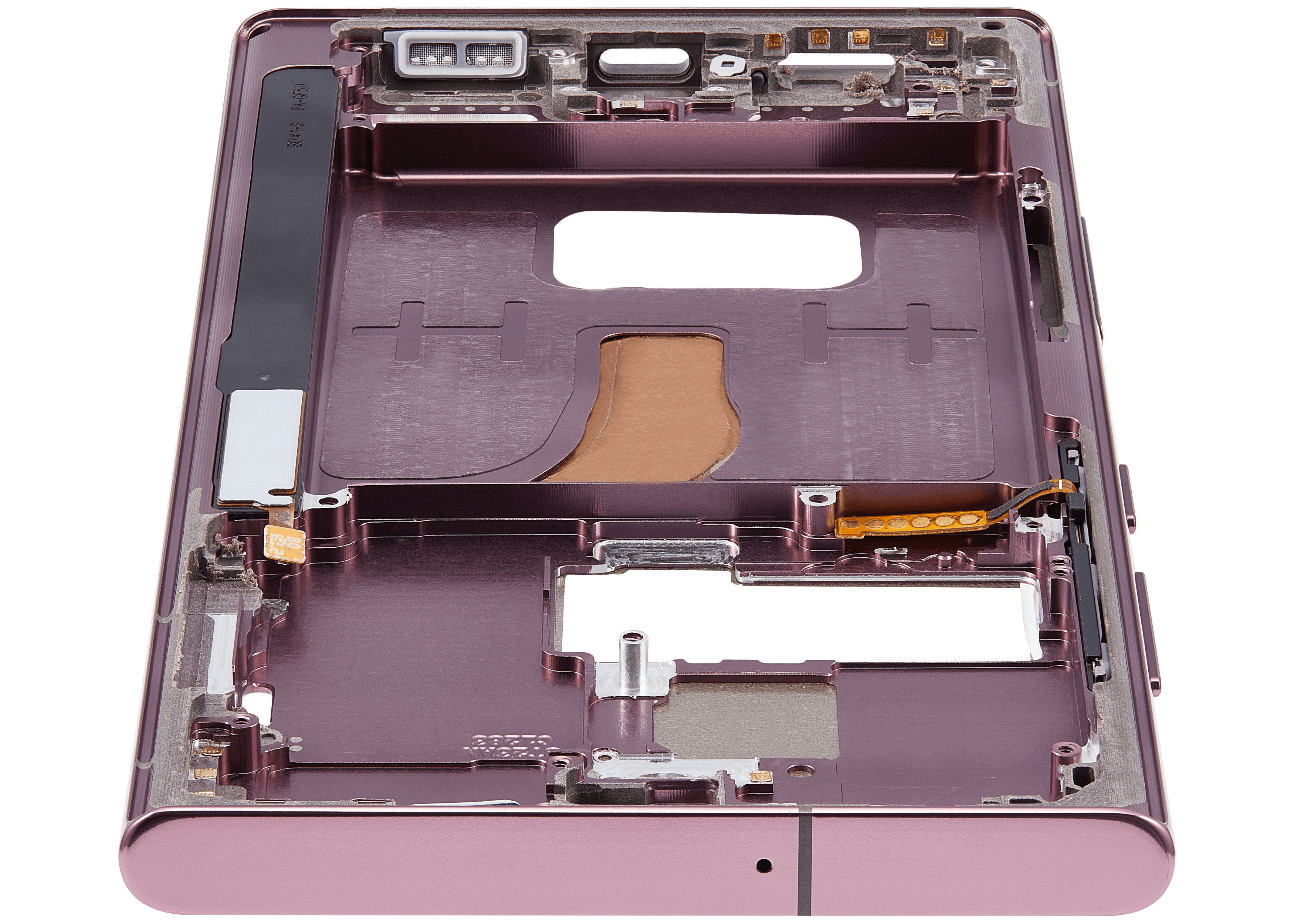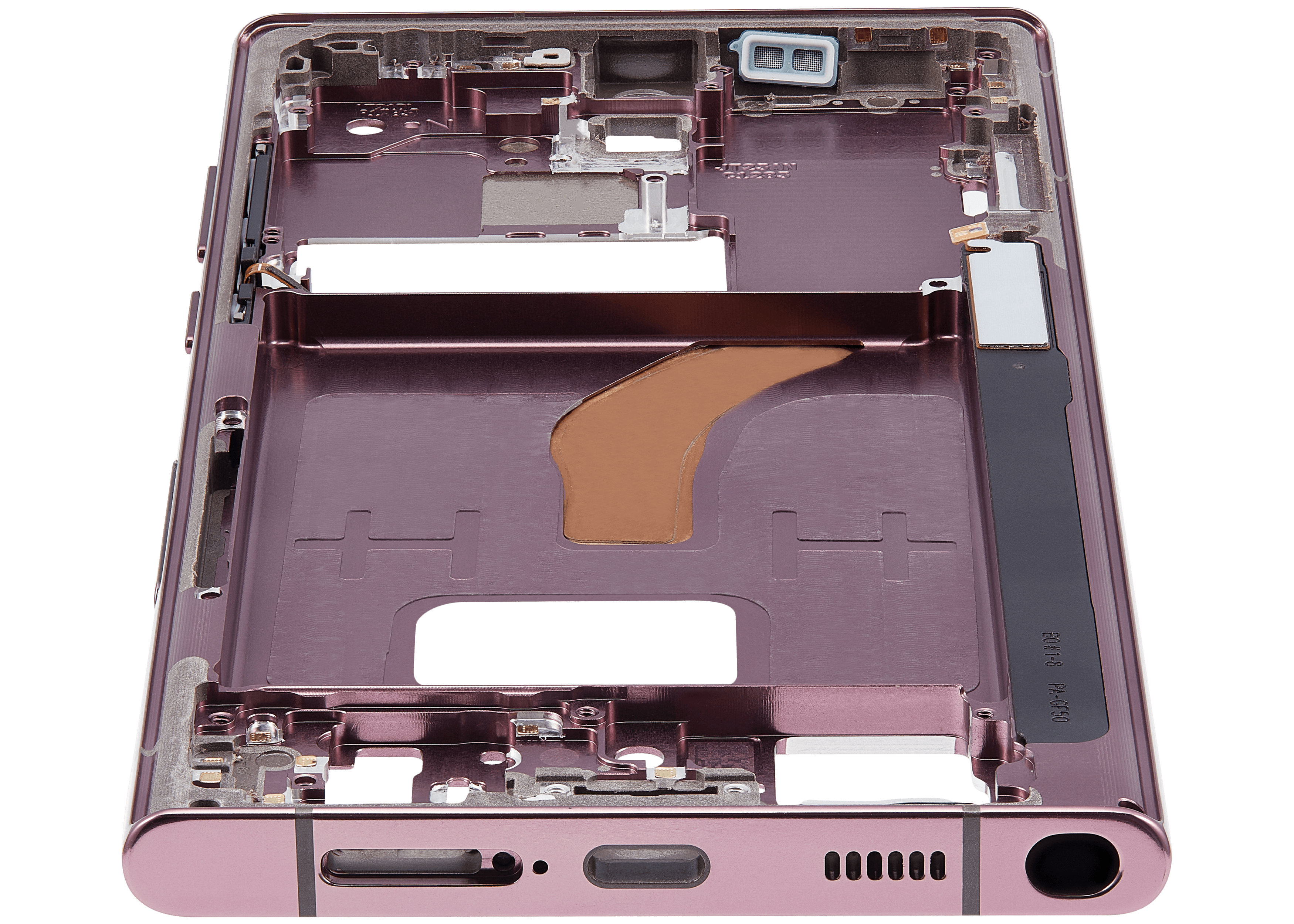 • The Mid-Frame Housing provides structural support for internal components such as the Power and Volume Buttons.