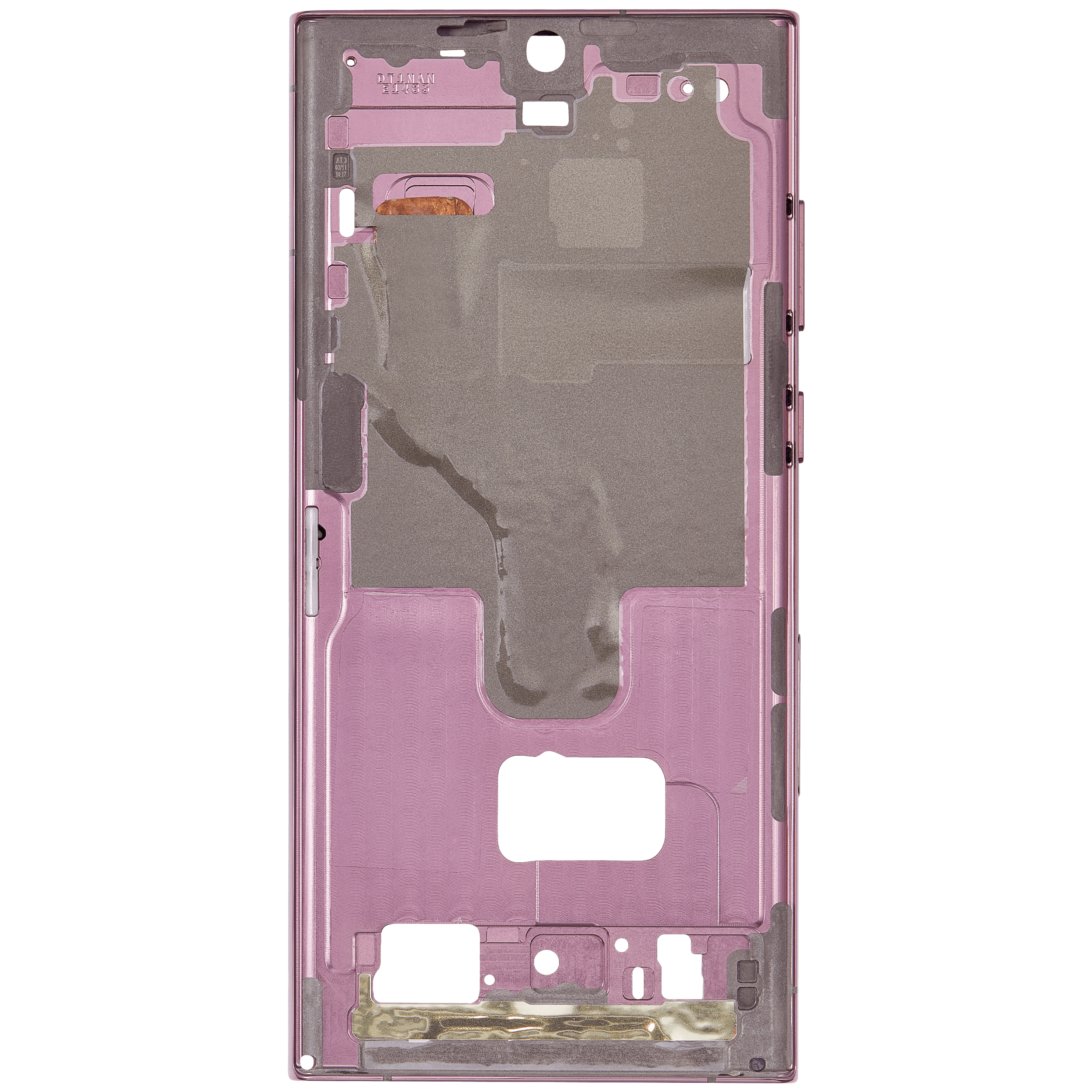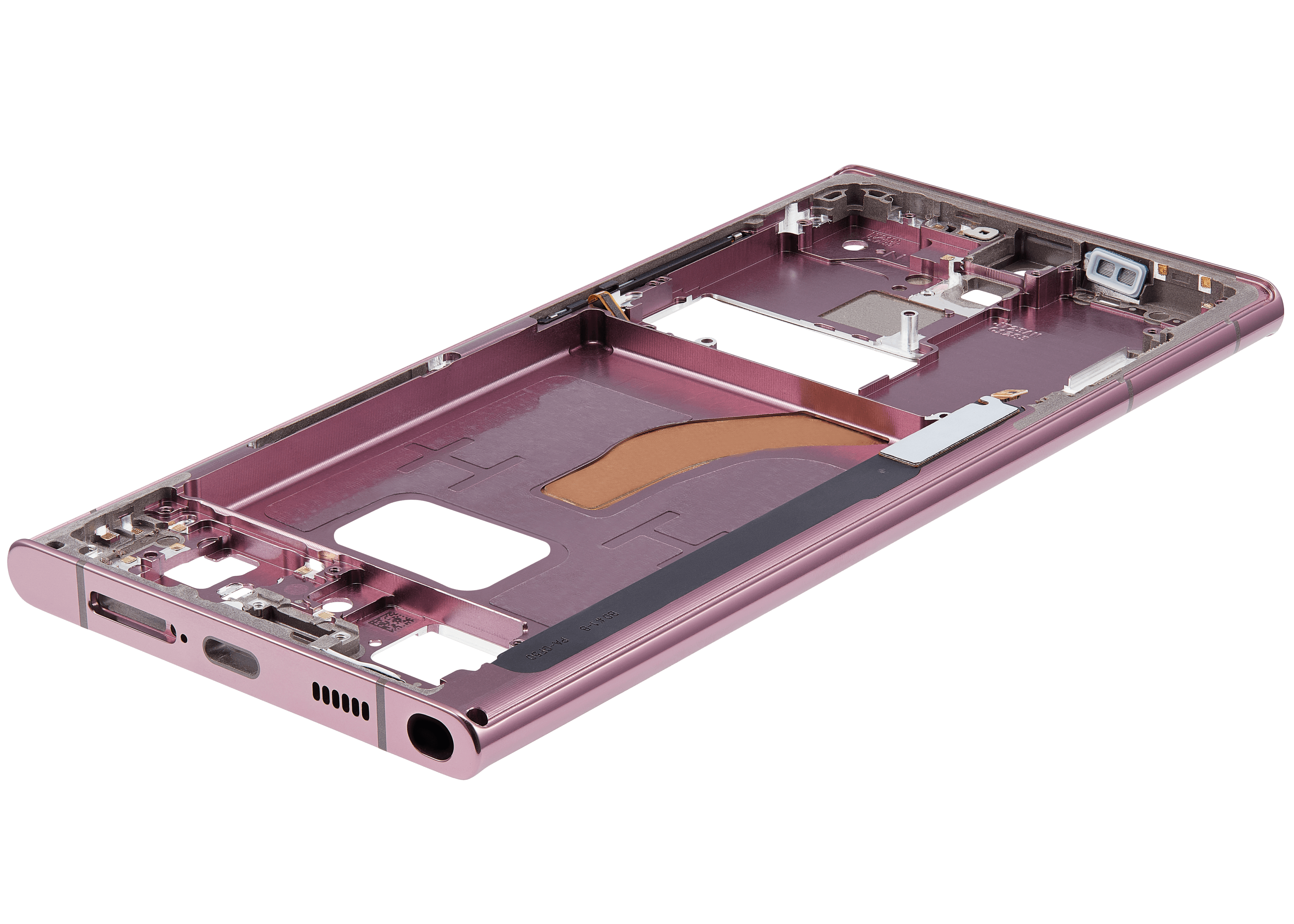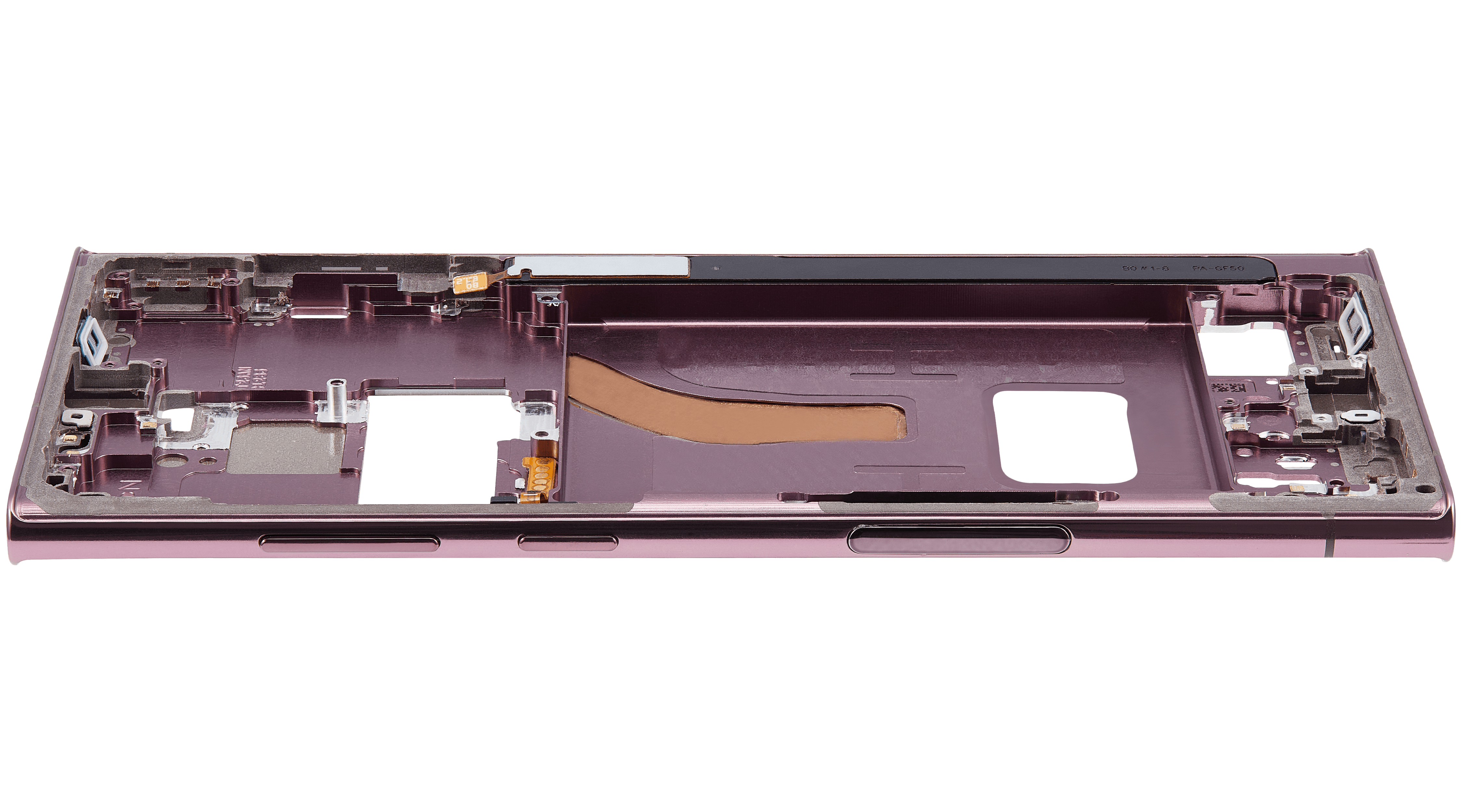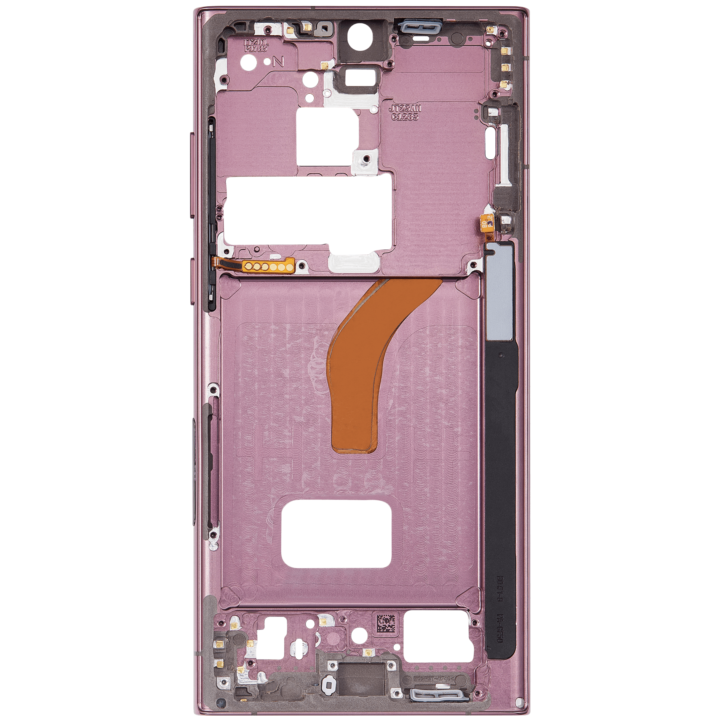• The Mid-Frame Housing provides structural support for internal components such as the Power and Volume Buttons.