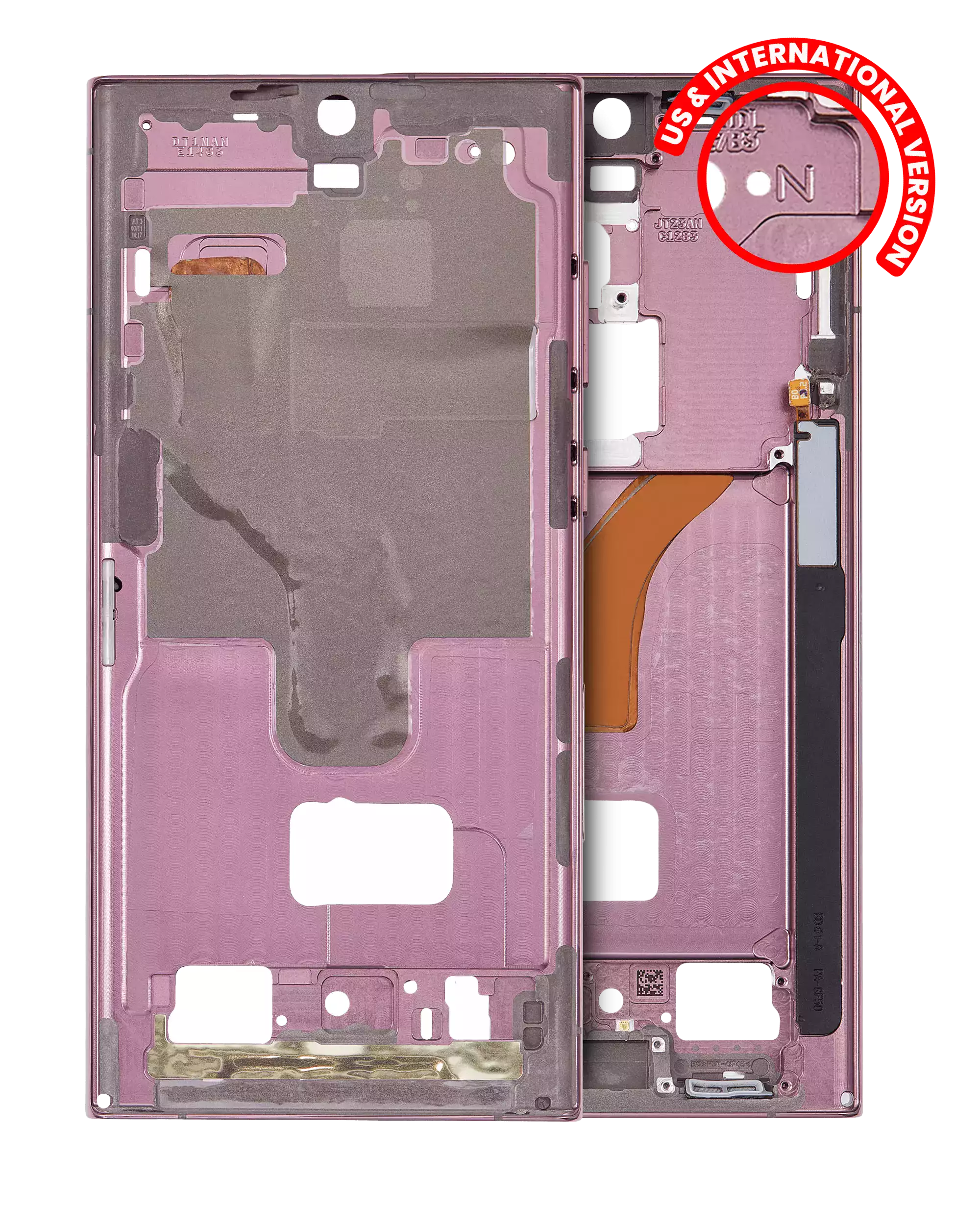 • High quality Samsung Galaxy S22 Ultra 5G Mid-Frame Housing Replacement (North American Version) (Burgundy).