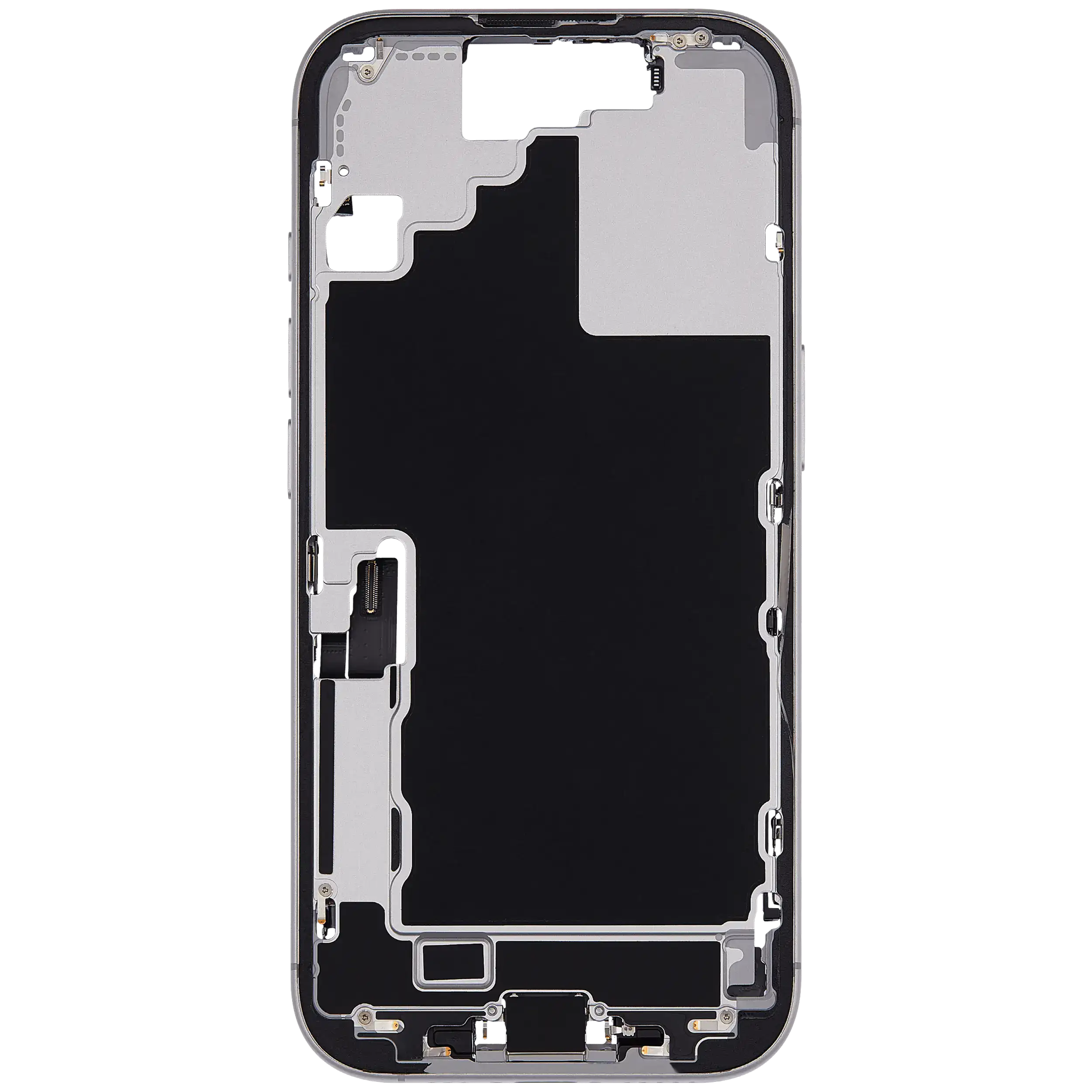 Mid-Frame Housing W/ Charging Port Flex & Small Parts For iPhone 17 (US Version) (Used OEM Pull: Grade A) (White)