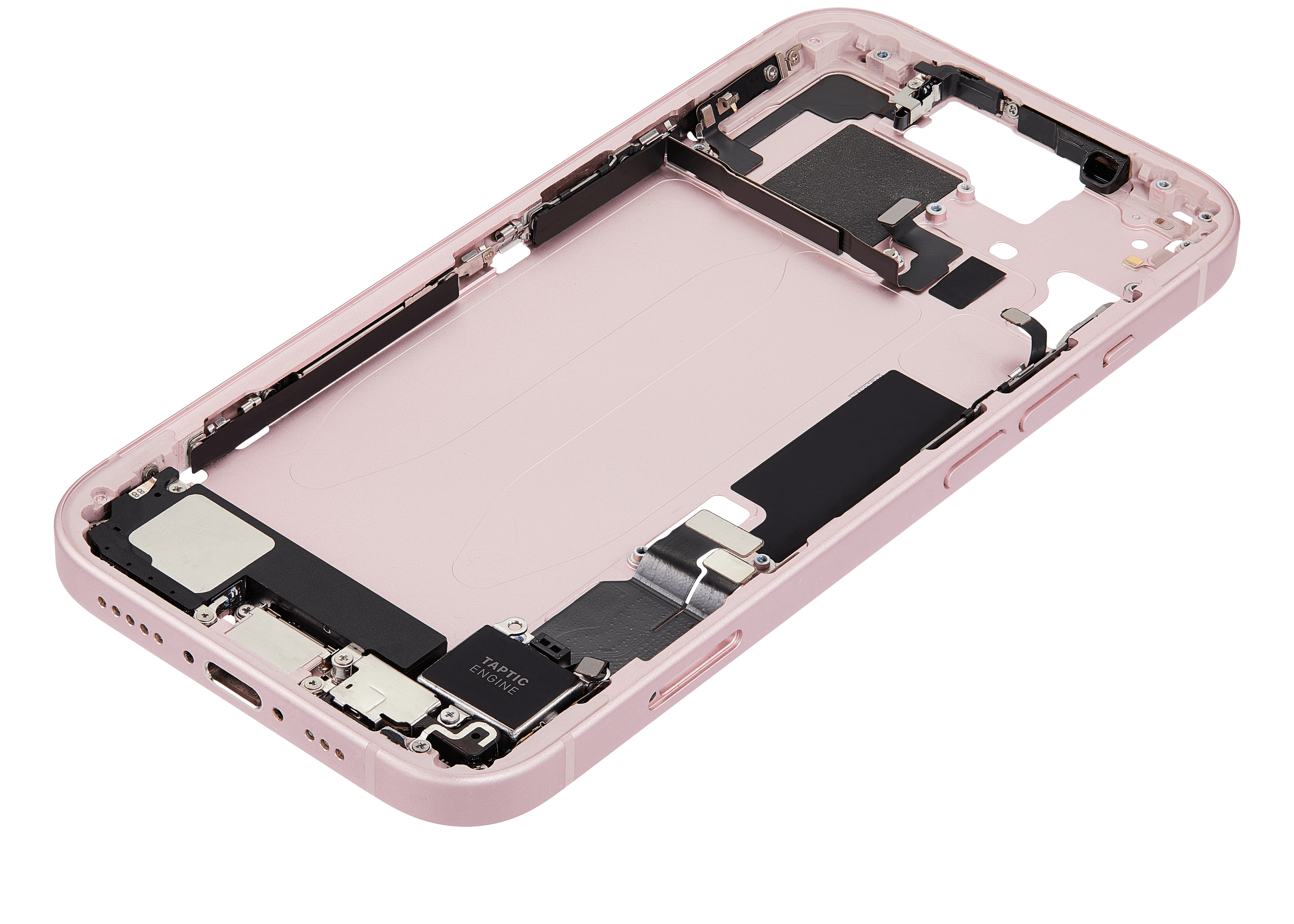 Mid-Frame Housing W/ Charging Port Flex & Small Parts For iPhone 15 (EU / Global Version) (Used OEM Pull: Grade C) (Pink)