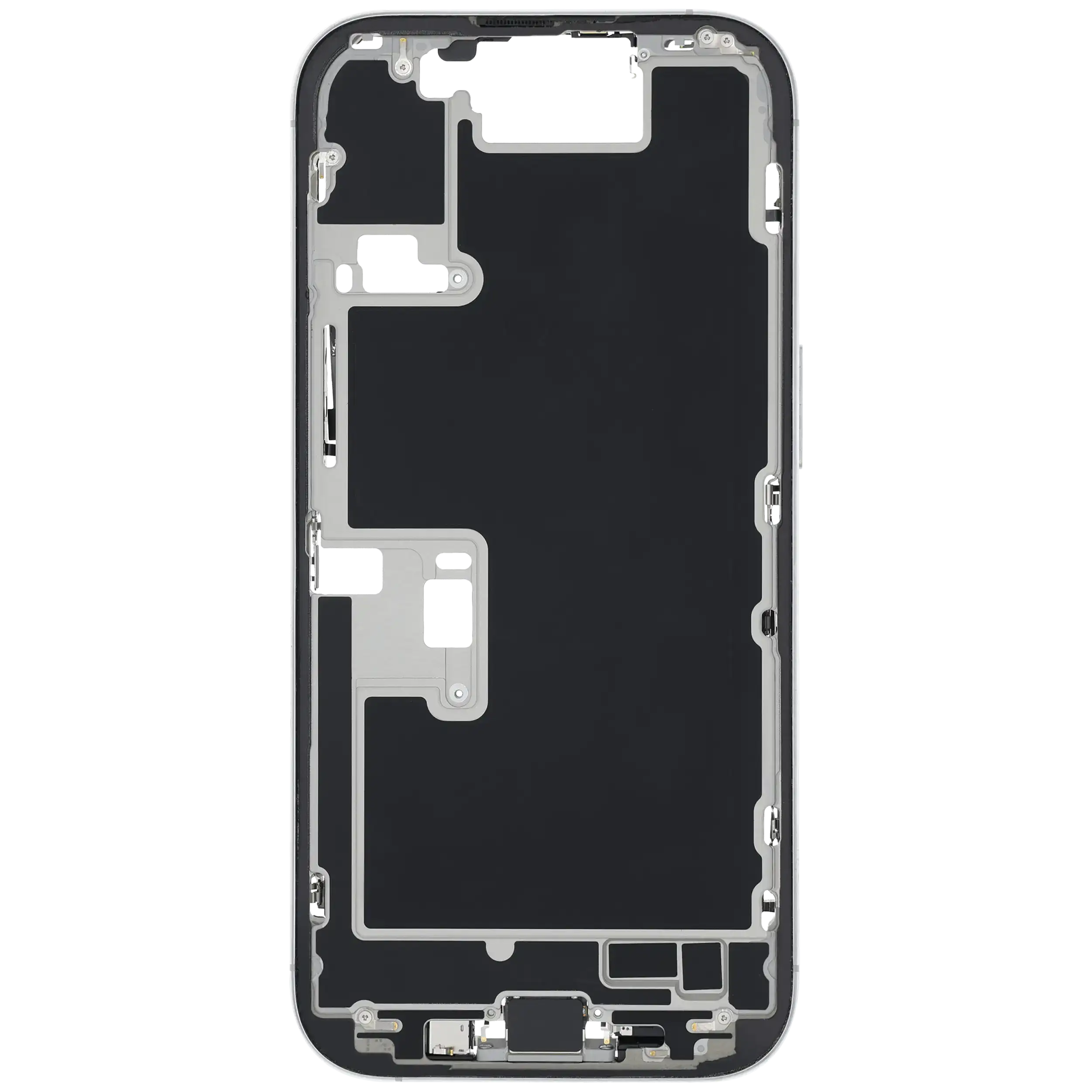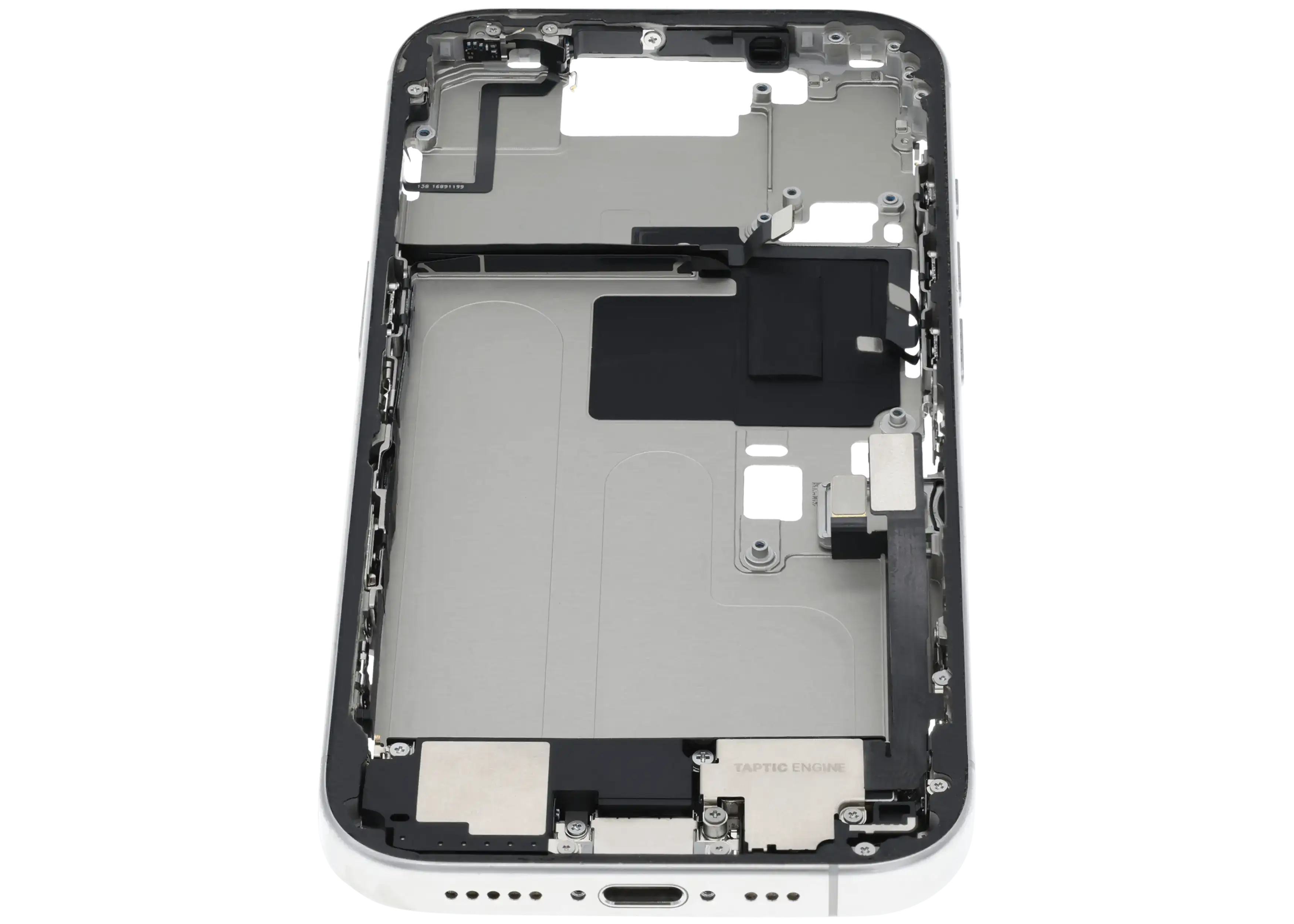 Mid-Frame Housing W/ Charging Port Flex & Small Parts For iPhone 16 Pro (EU / Global Version) (Used OEM Pull: Grade A) (White Titanium)