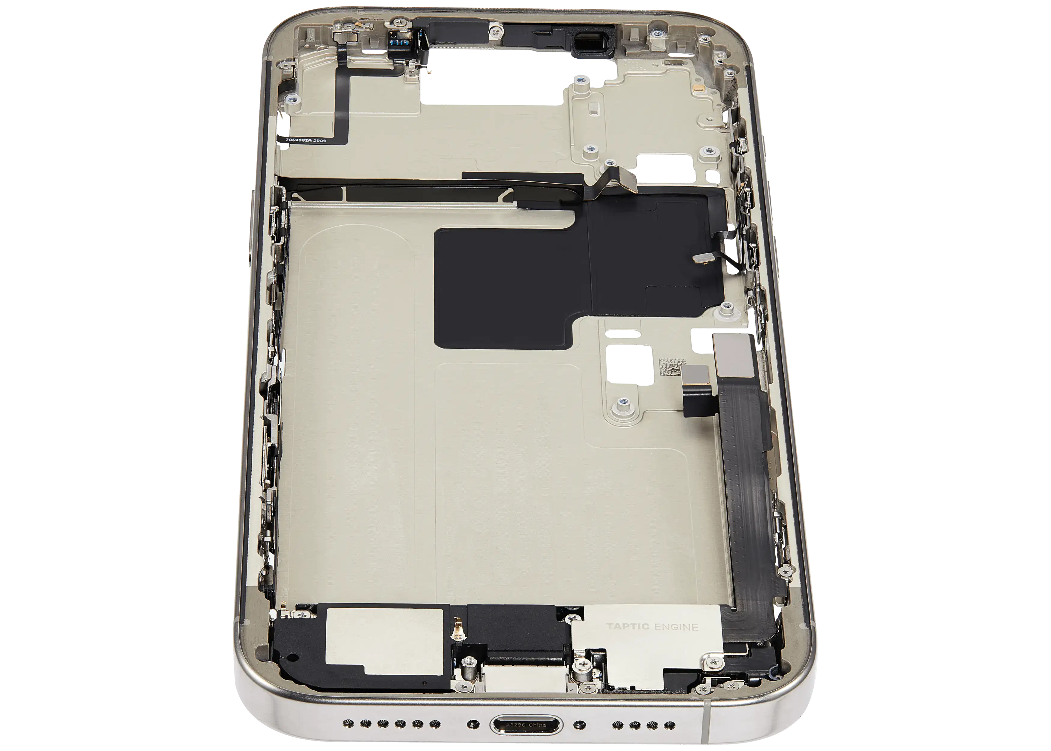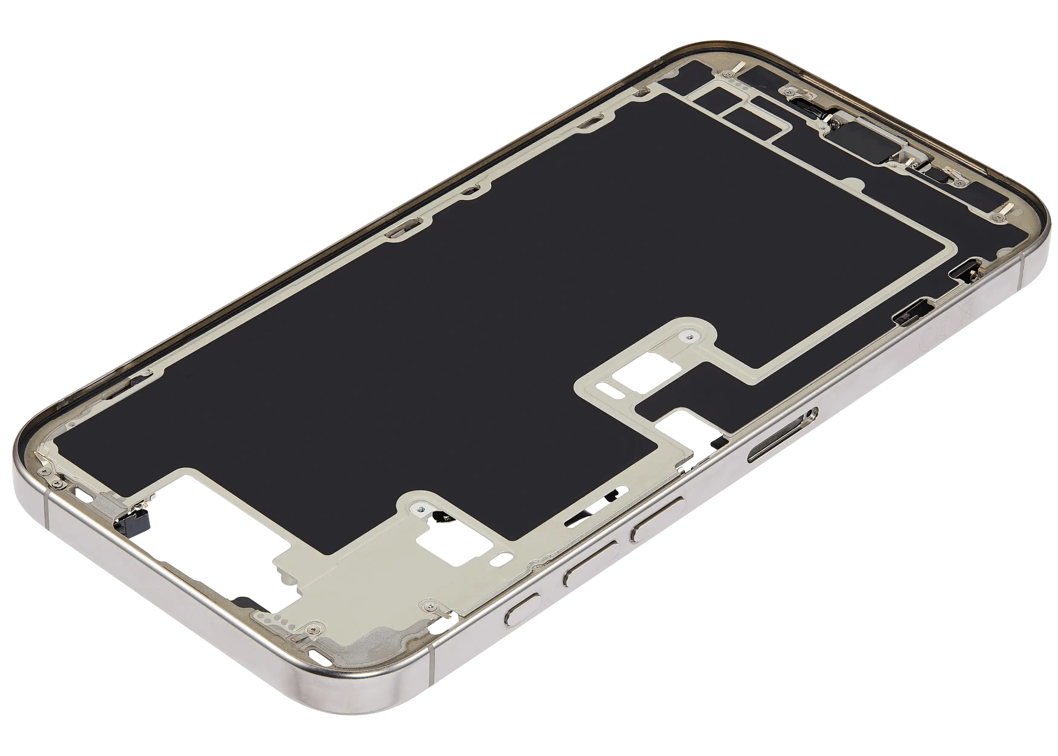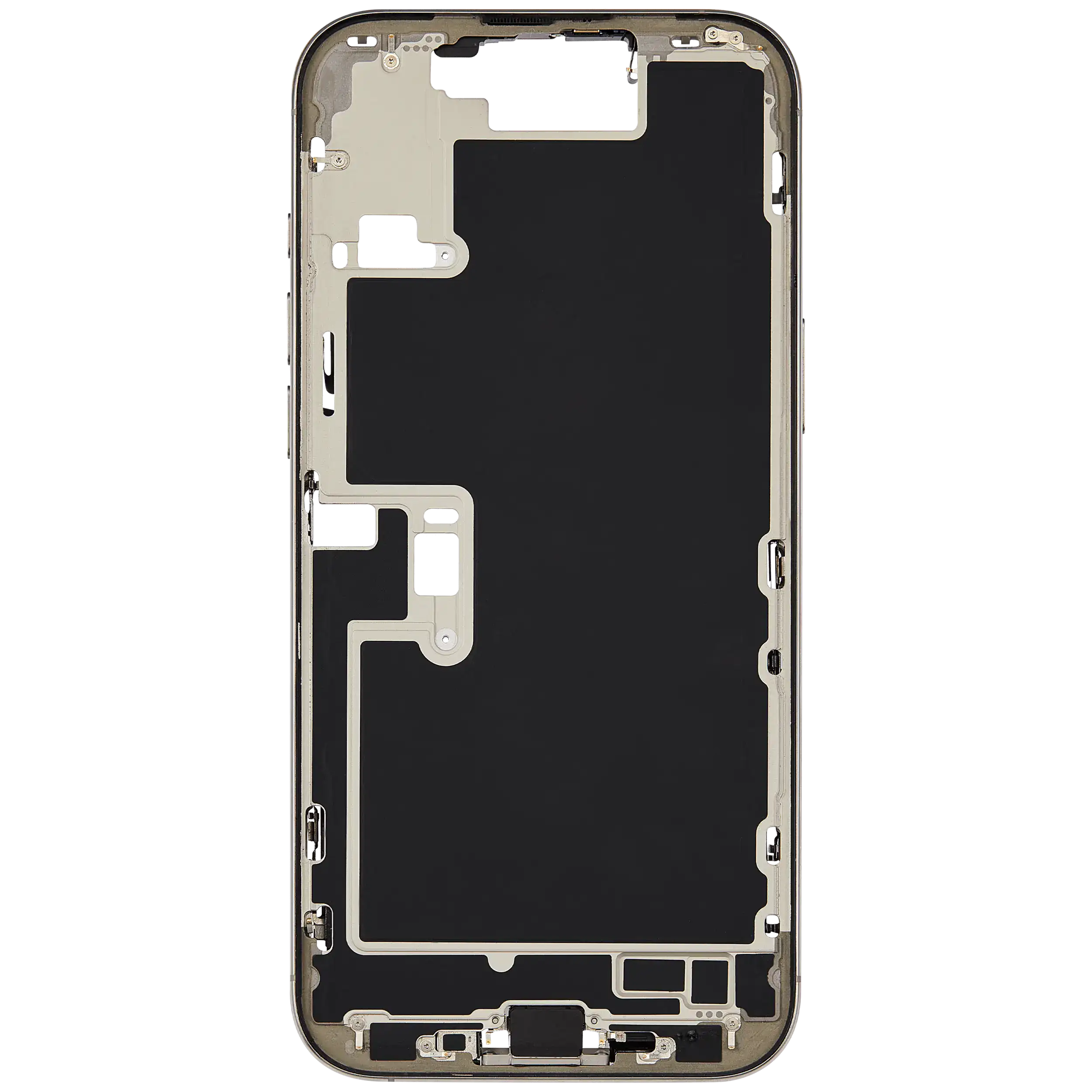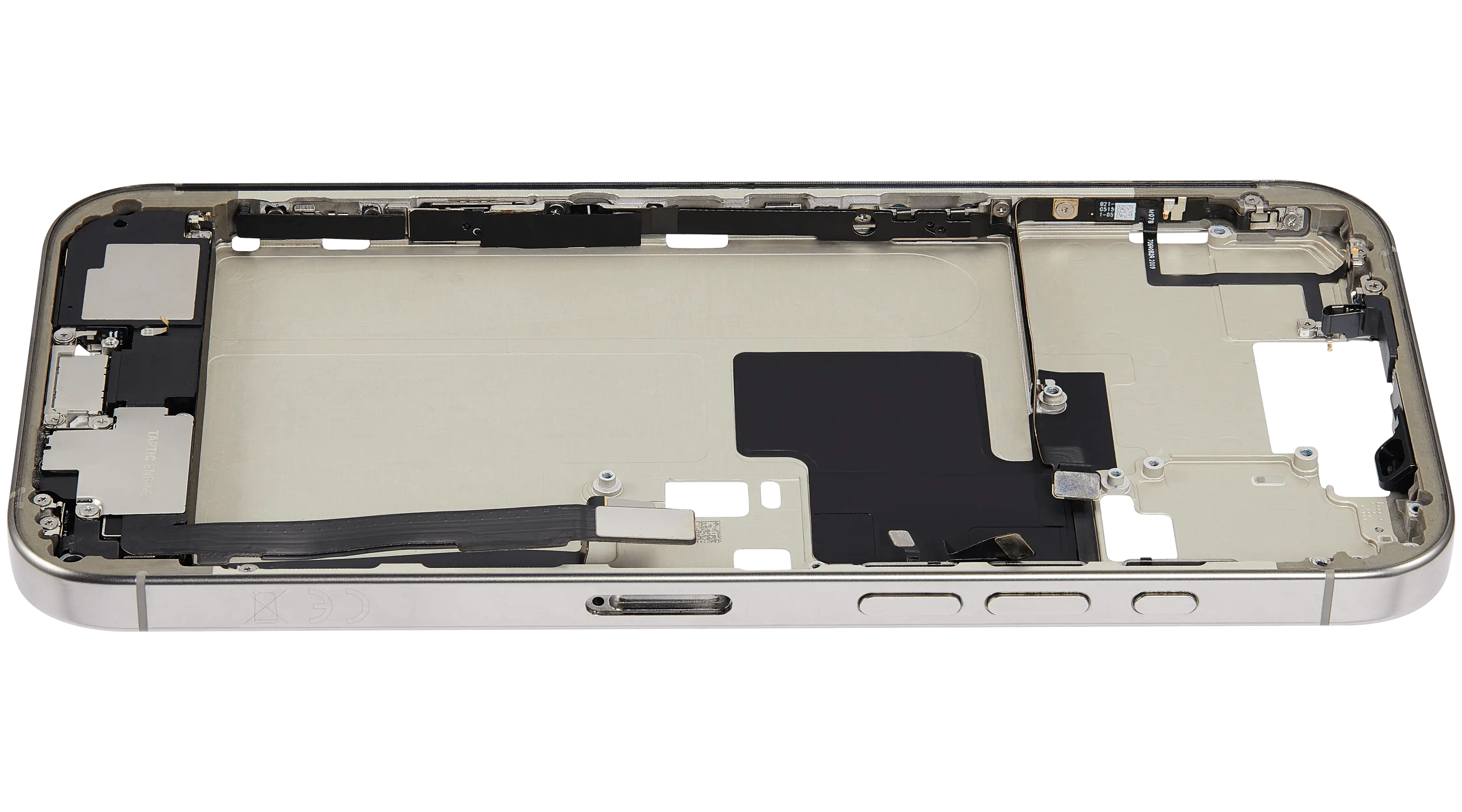 Mid-Frame Housing W/ Charging Port Flex & Small Parts For iPhone 16 Pro Max (EU / Global Version) (Used OEM Pull: Grade B) (Natural Titanium)