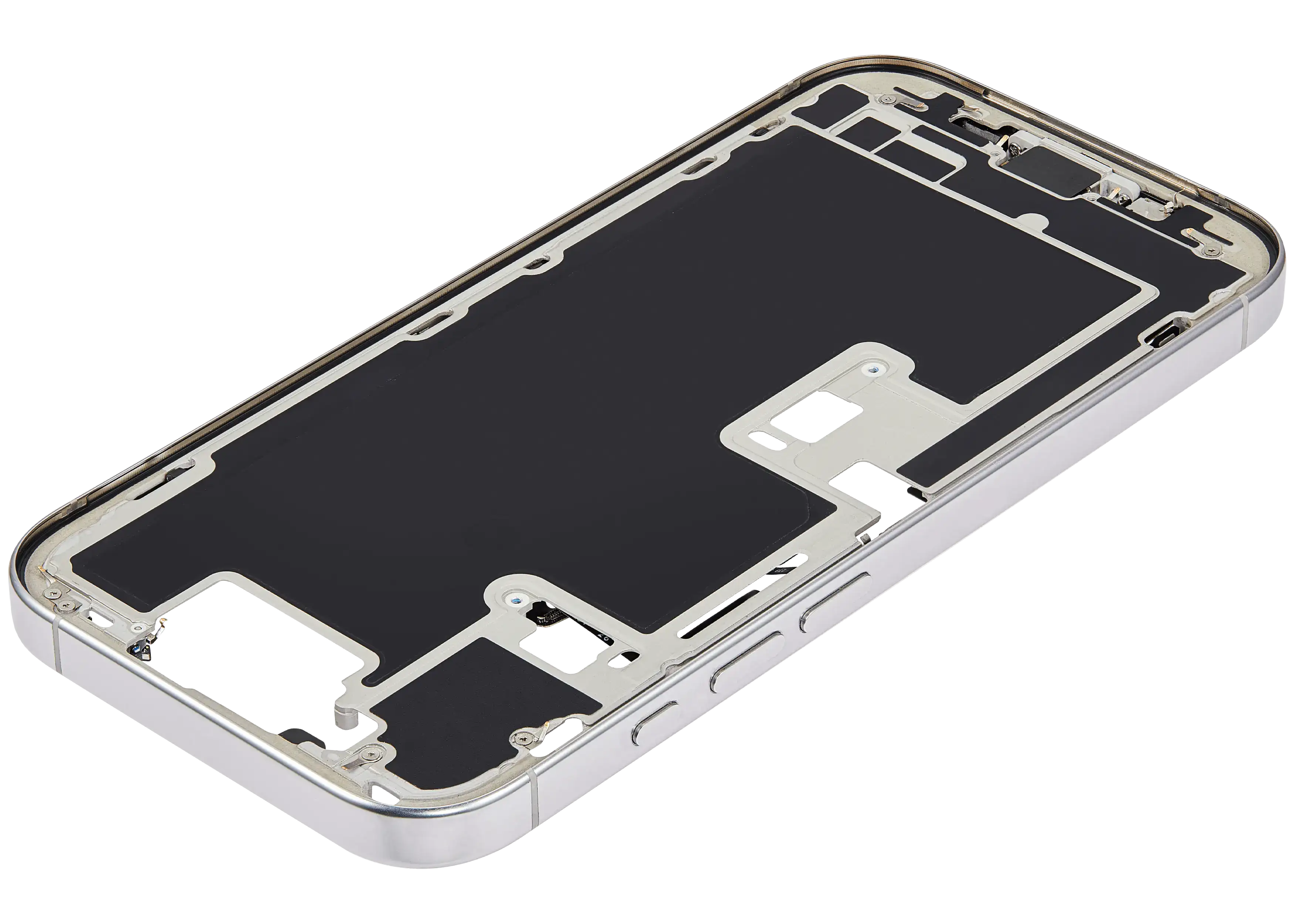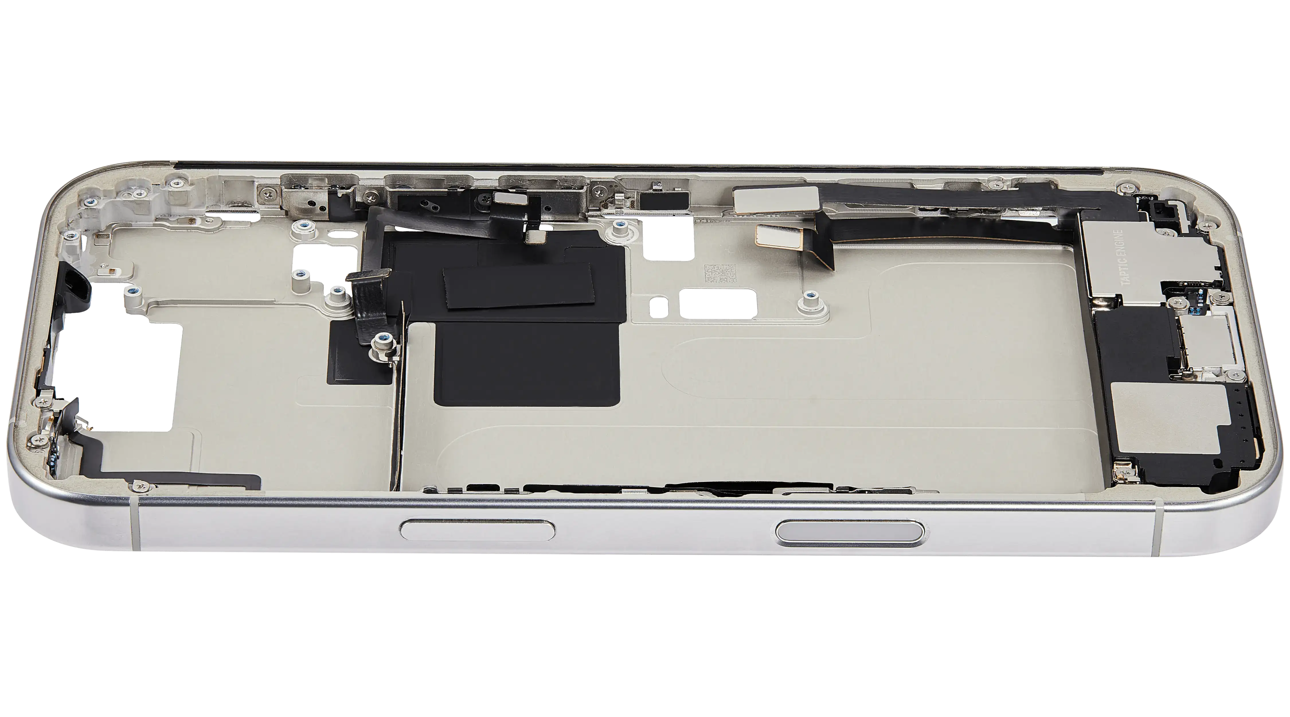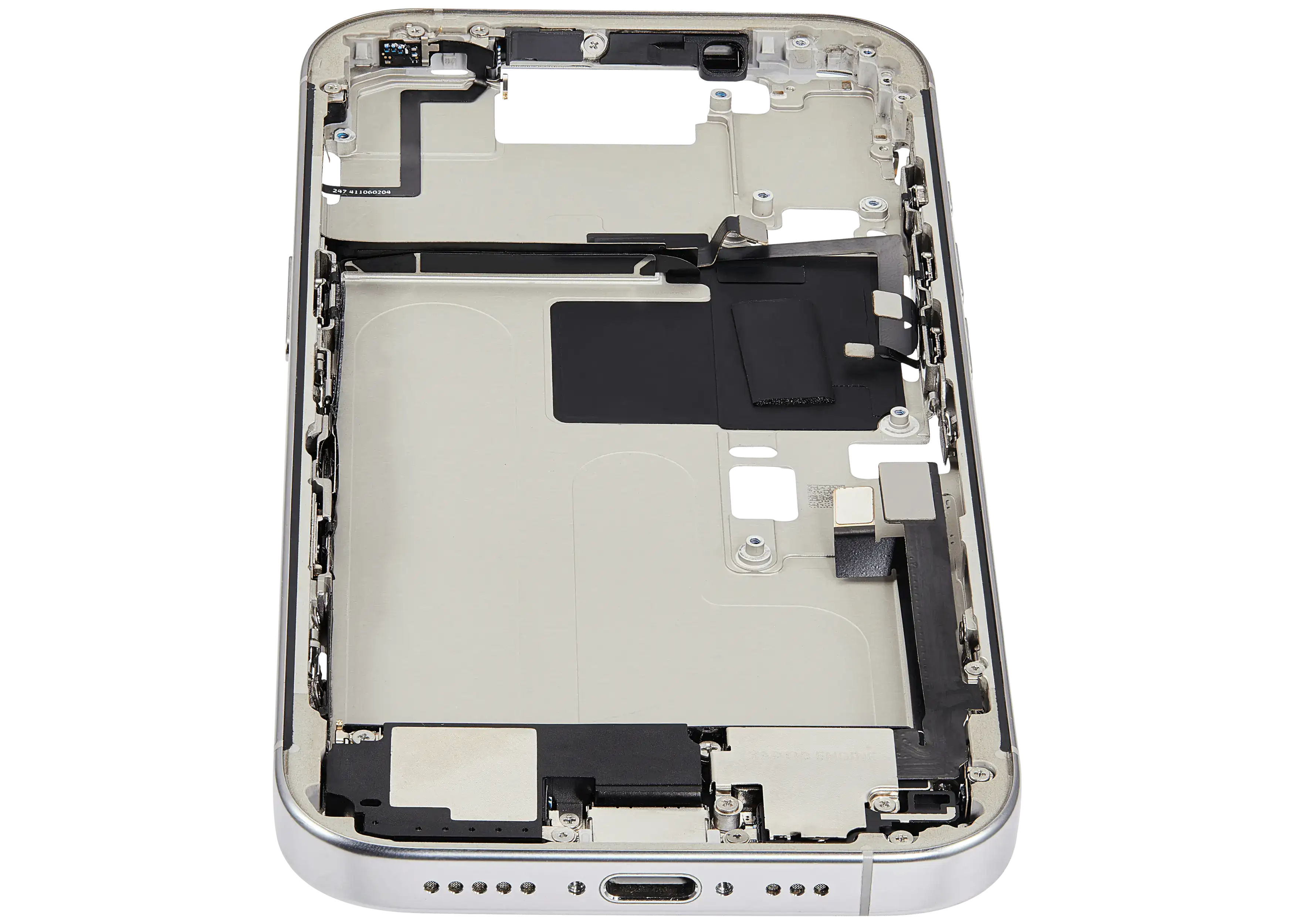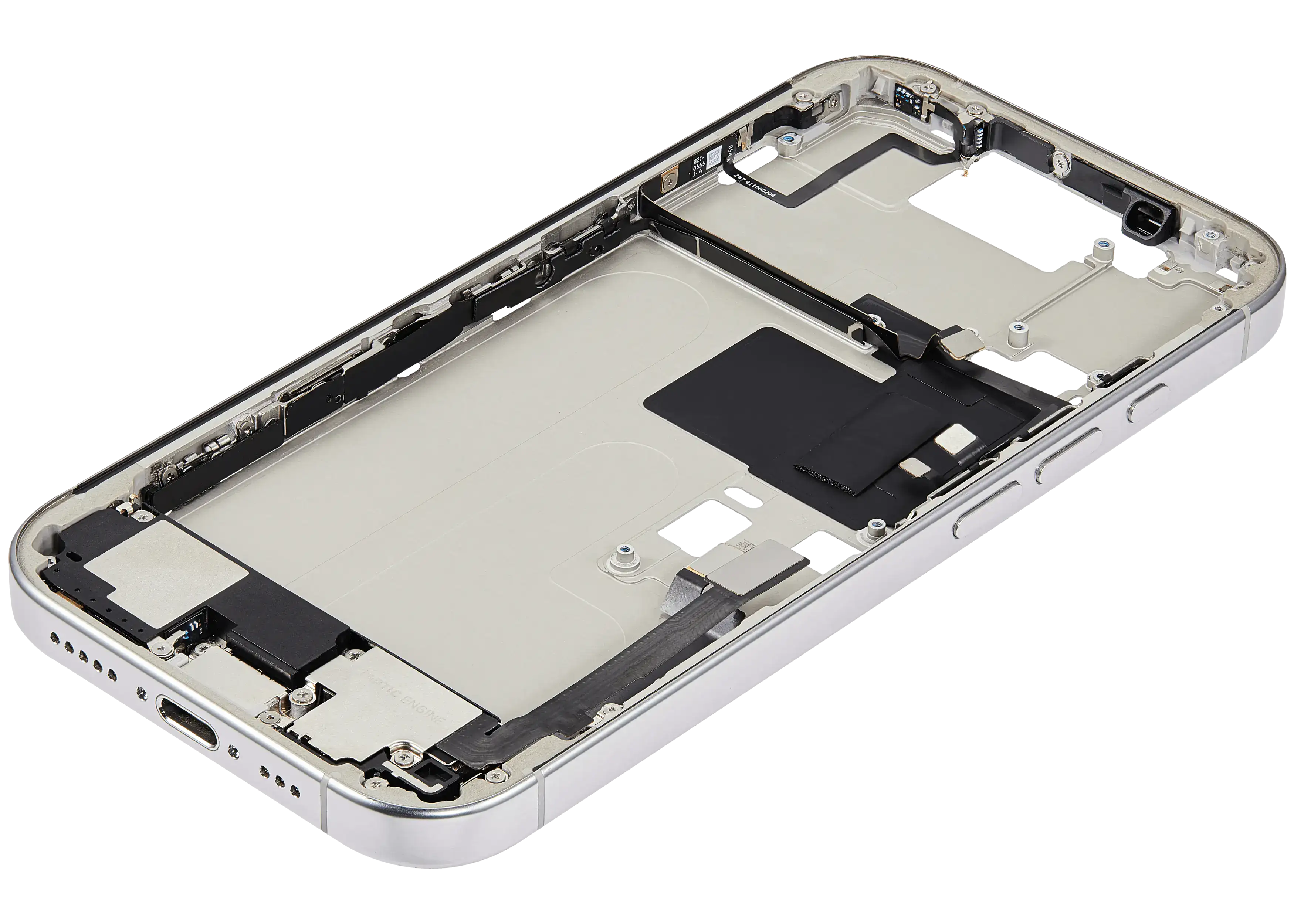 Mid-Frame Housing W/ Charging Port Flex & Small Parts For iPhone 16 Pro (US Version) (Used OEM Pull: Grade C) (White Titanium)