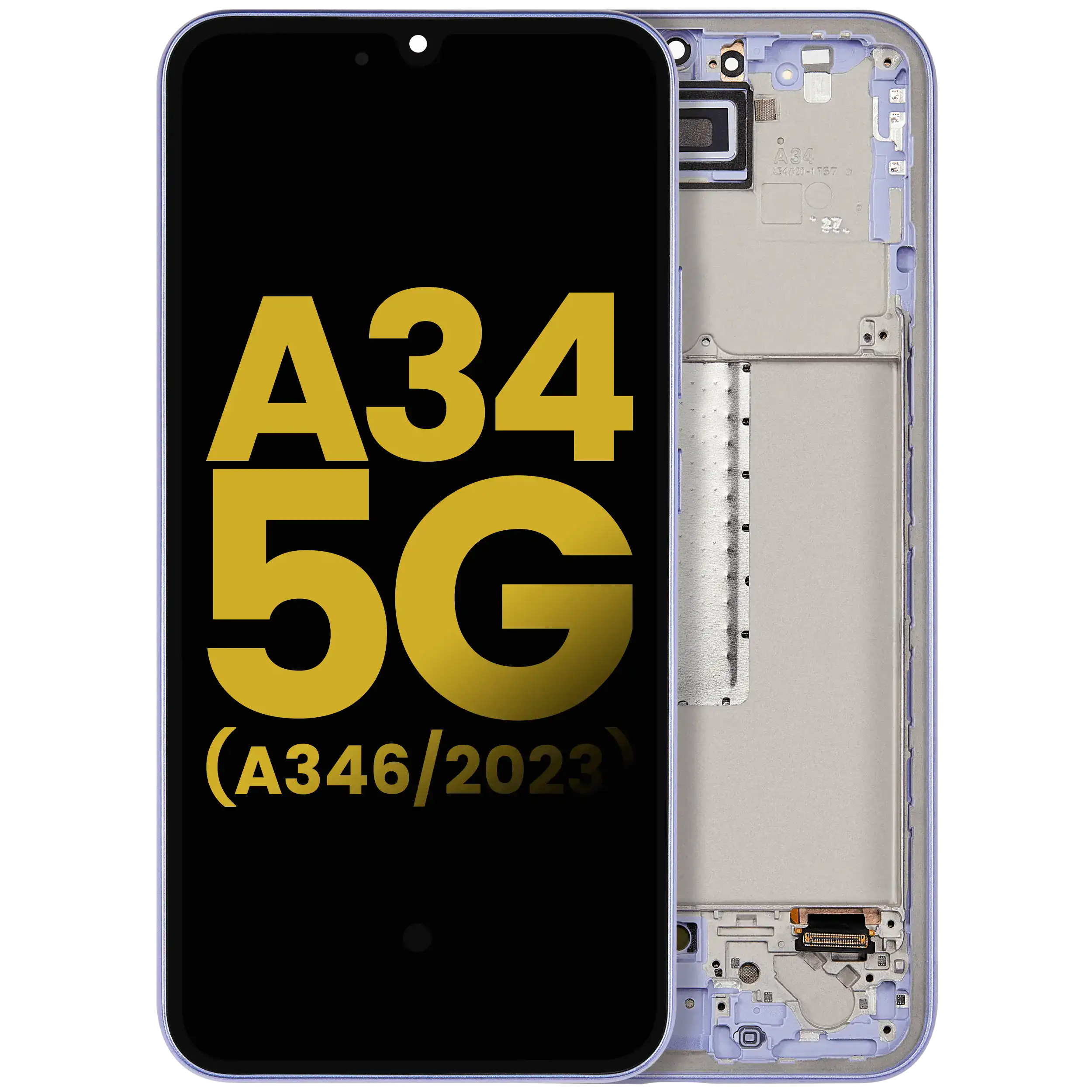 • High quality, Samsung Galaxy A34 OLED Screen Replacement with frame (A346 / 2023) (Refurbished) (Violet).