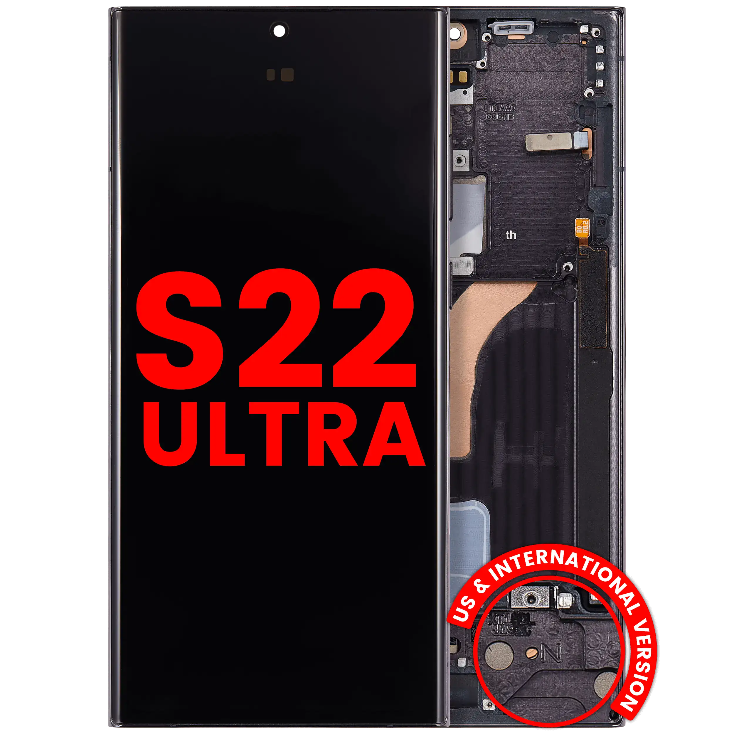 • High quality, Samsung Galaxy S22 Ultra 5G OLED Screen Replacement with frame (Aftermarket Plus) (Phantom Black).