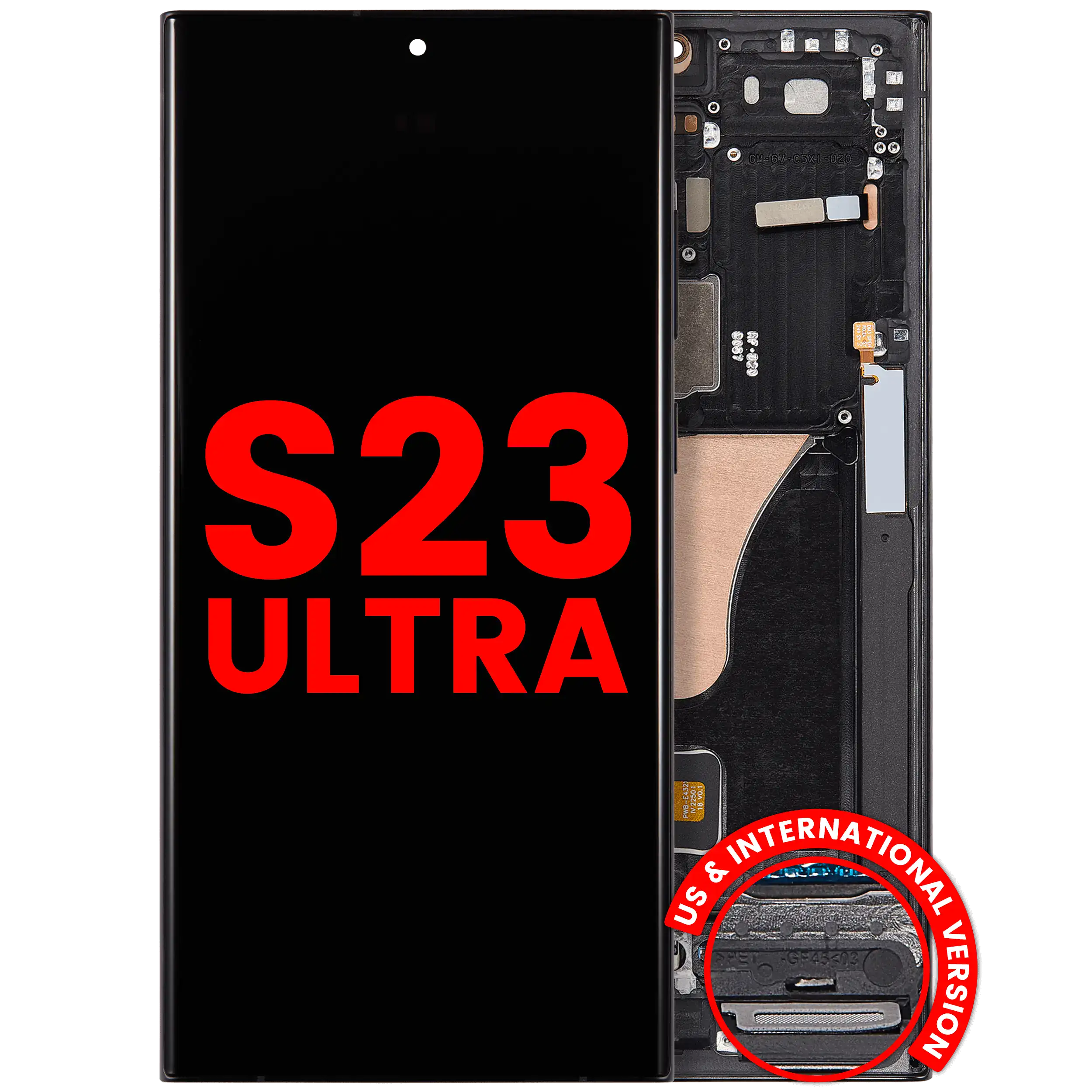 • Best quality Samsung Galaxy S23 Ultra OLED screen replacement with frame (US & International) (Aftermarket Plus) (Graphite).