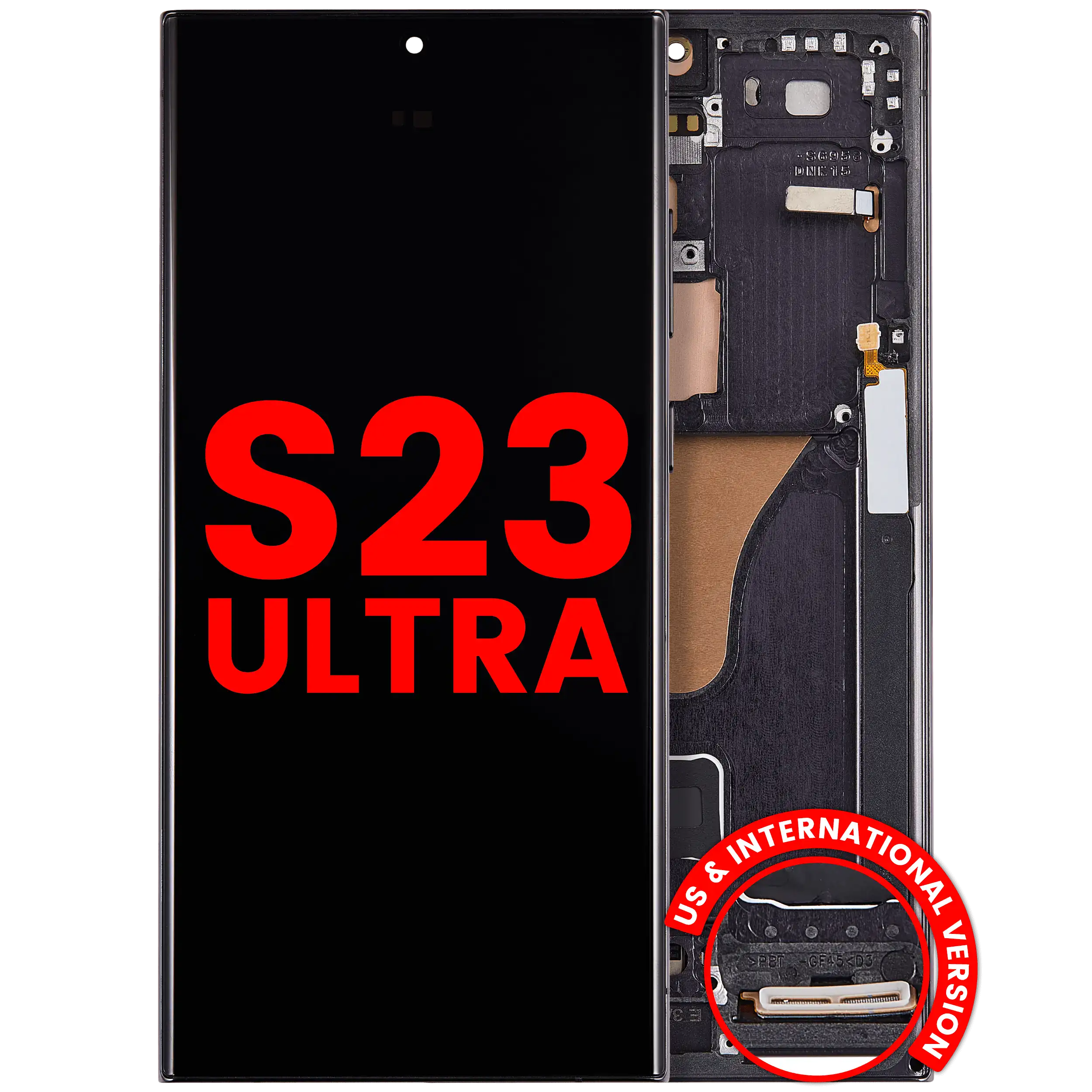 • Best quality Samsung Galaxy S23 Ultra OLED screen replacement with frame (US & International) (Aftermarket Plus) (Phantom Black).