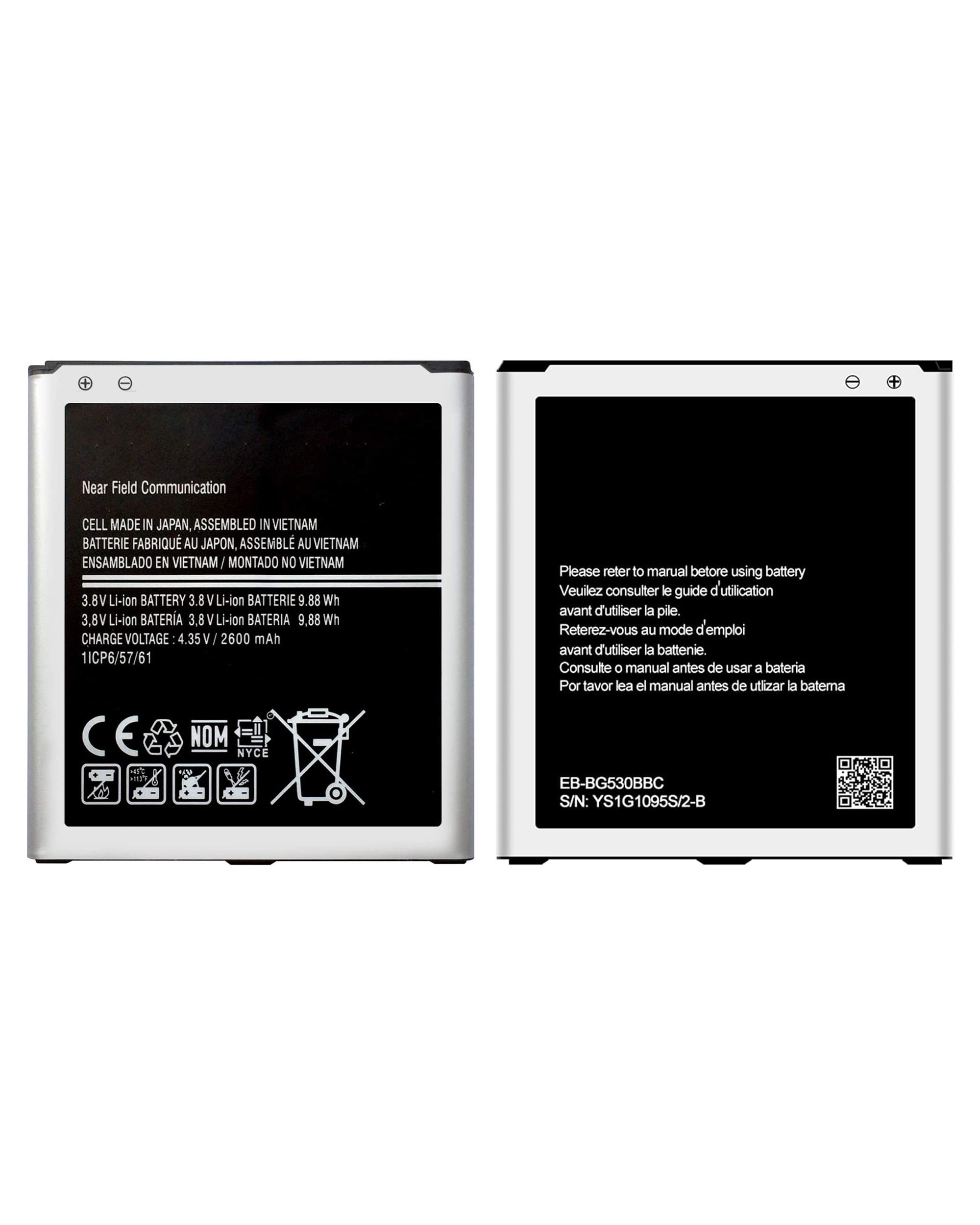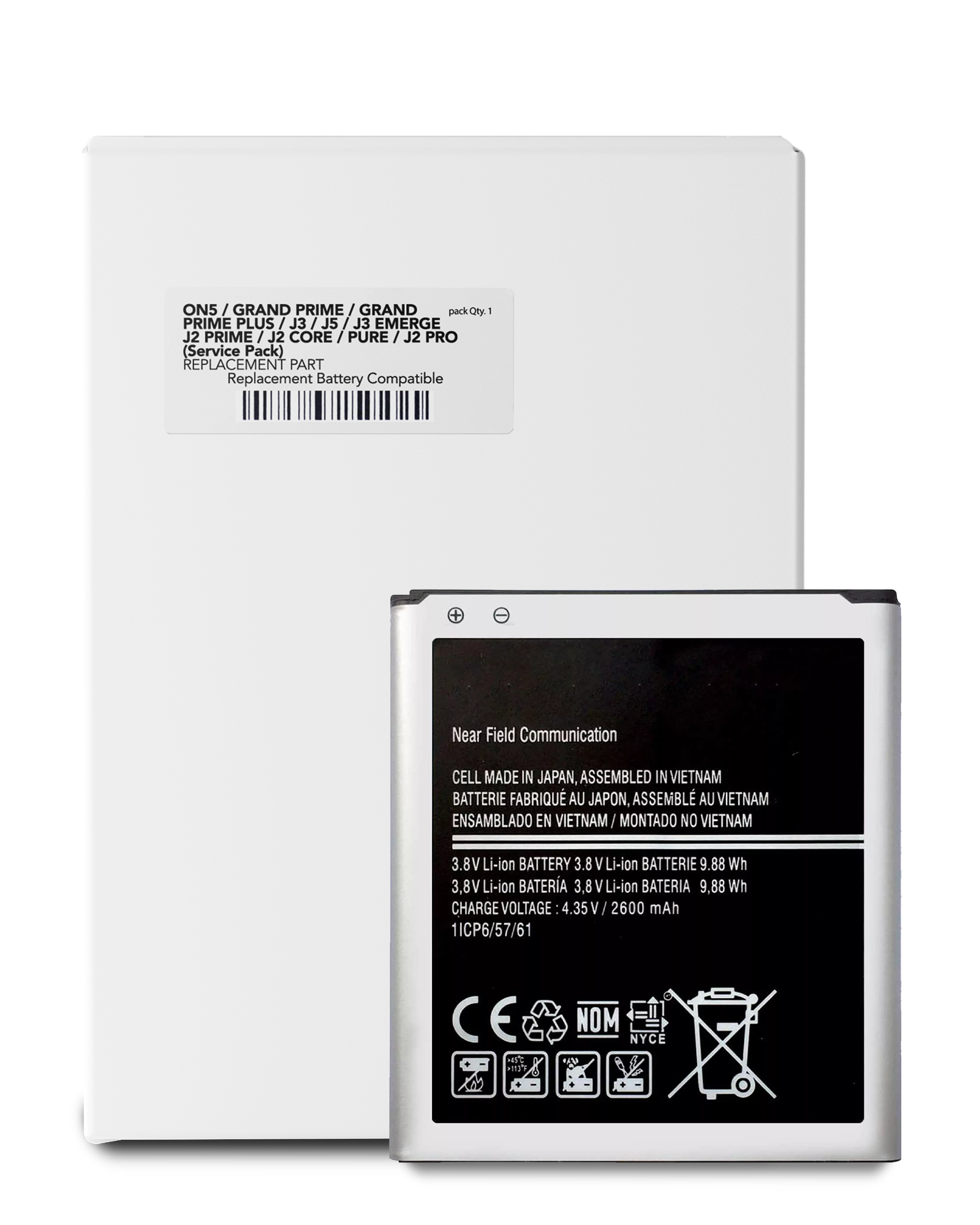 Replacement Battery For Galaxy On5 (G550) / Grand Prime (G530) / Grand Prime Plus / J3 (J320/2016) / J5 (J500/2015) / J3 Emerge (J327/2017) / J3 (J337/2018) / J2 Prime (G532) / J2 Core / Pure (J260/2018) / J2 Pro (J210) (Service Pack)