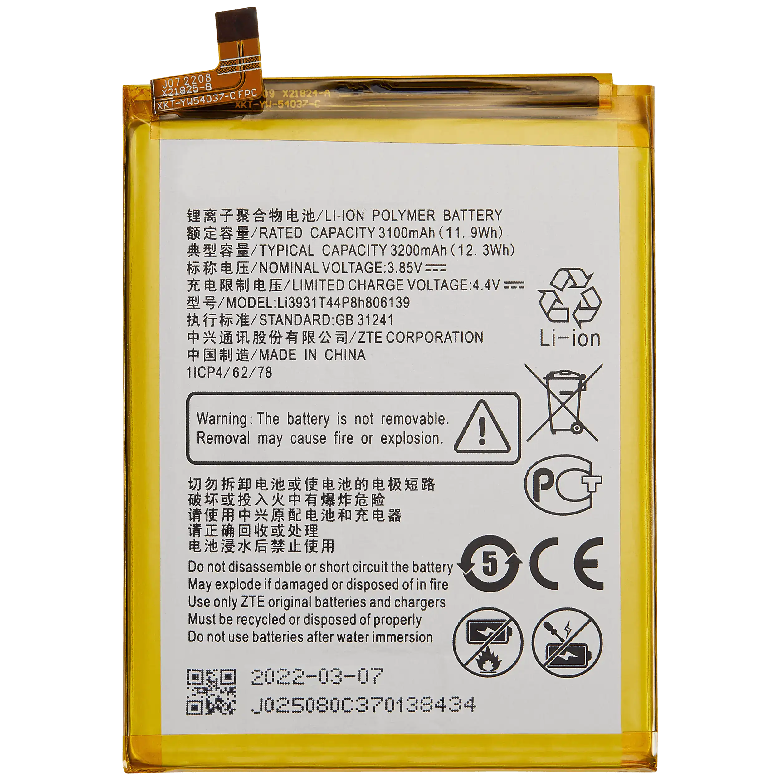 Replacement Battery For ZTE Blade A7 (2019) / Blade A5 (2020) (Li3931T44P8h806139)