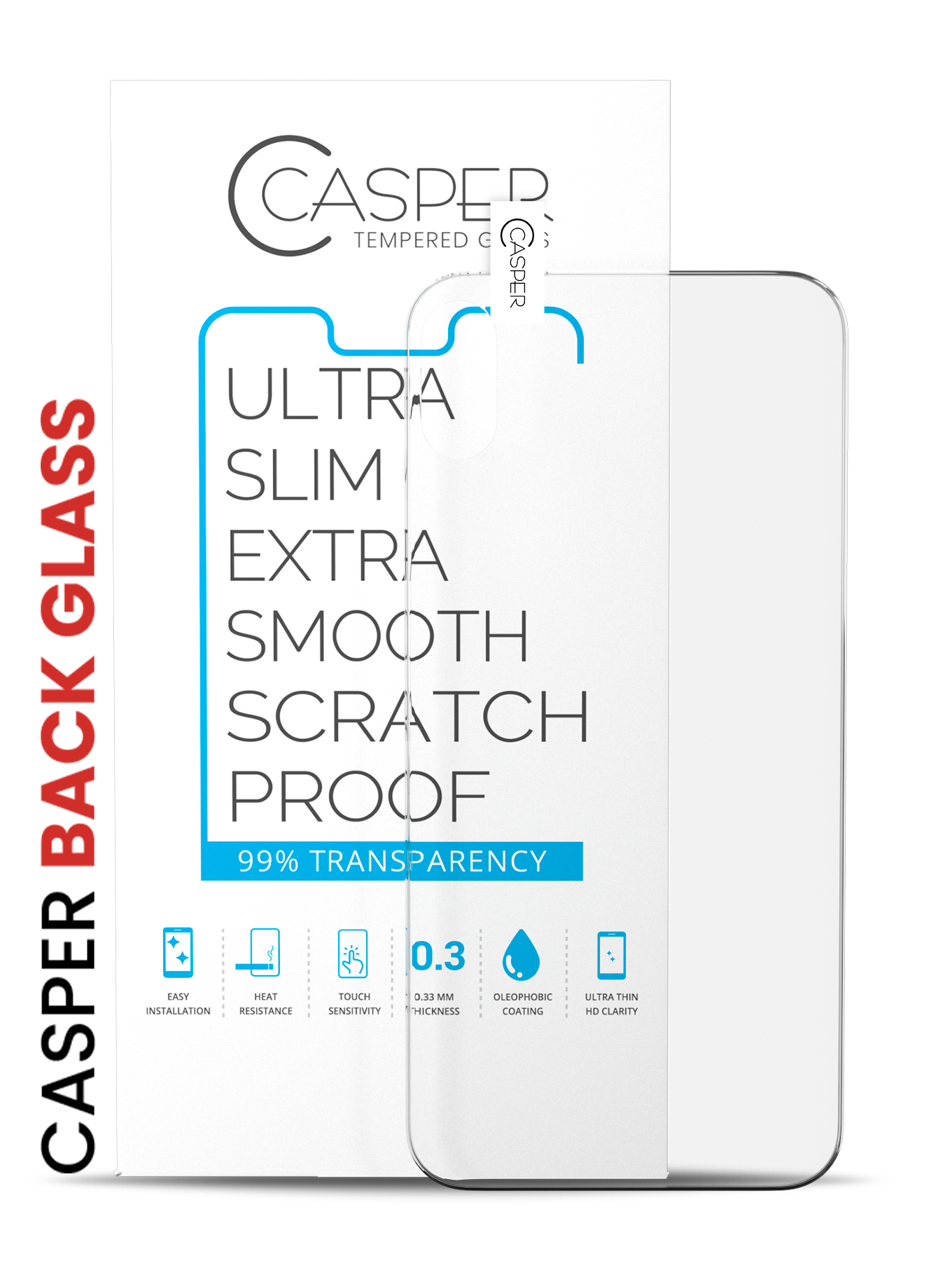 • The Casper Tempered Glass also has an Oleophobic surface treatment for an ultra-clear smooth finish.