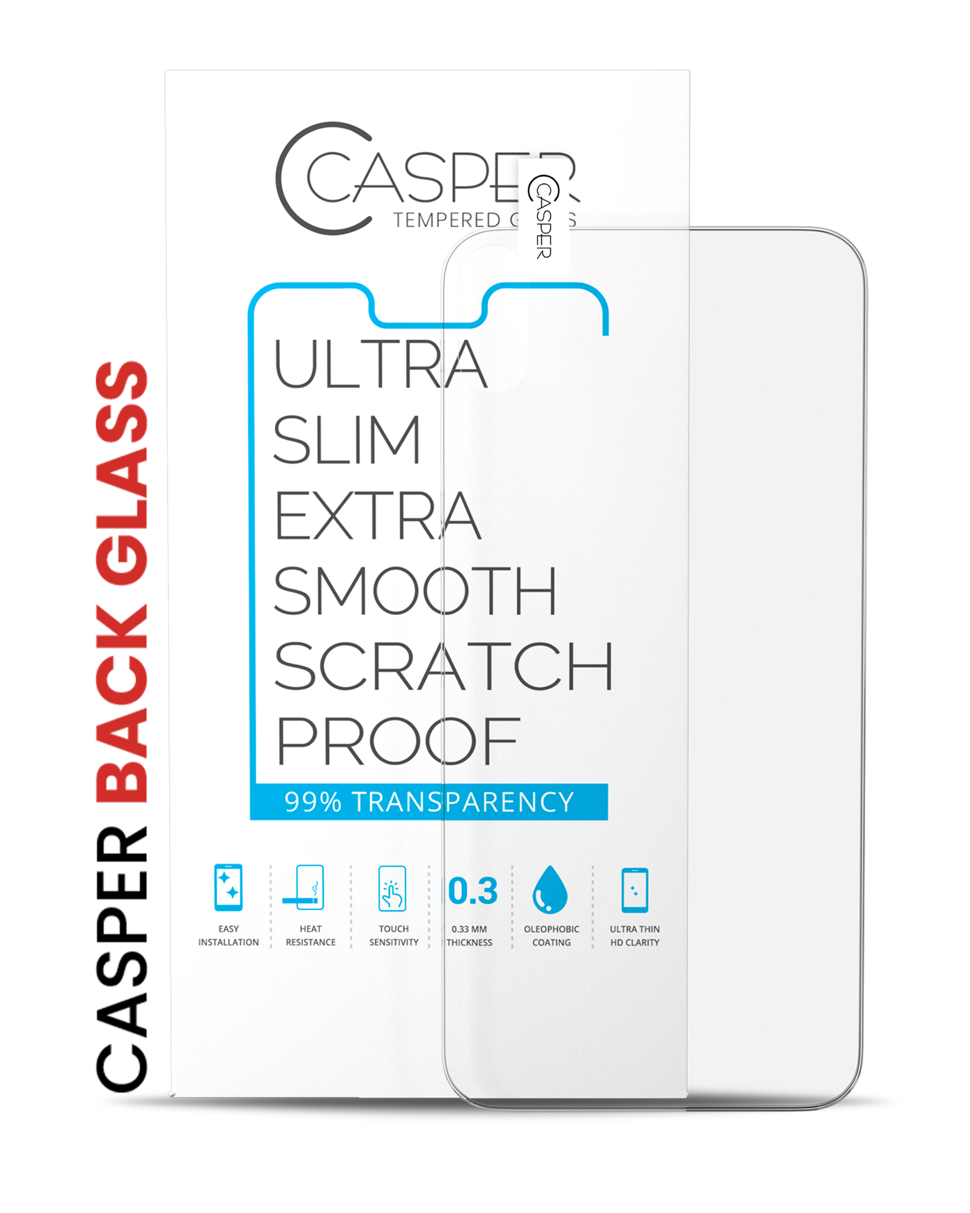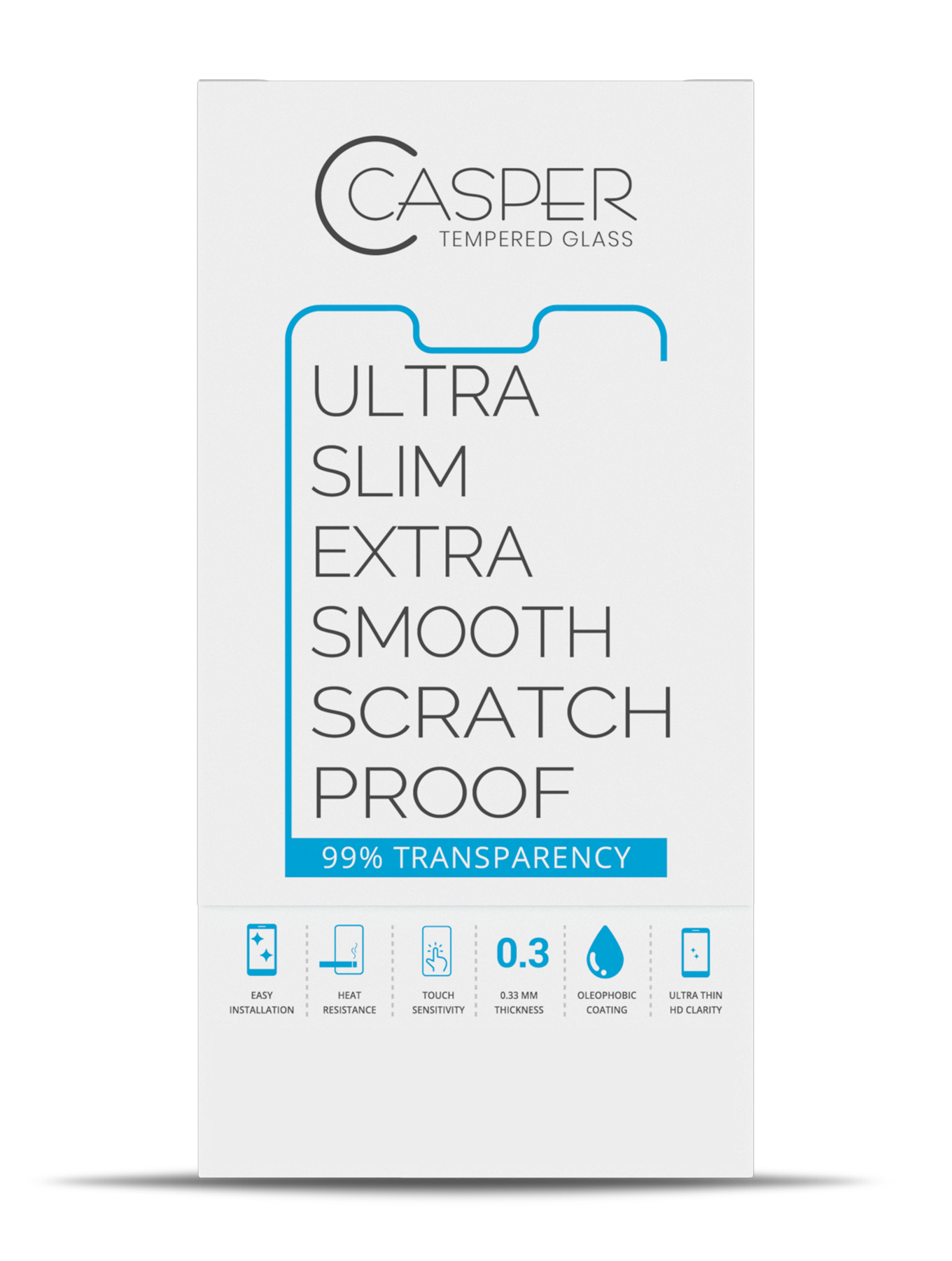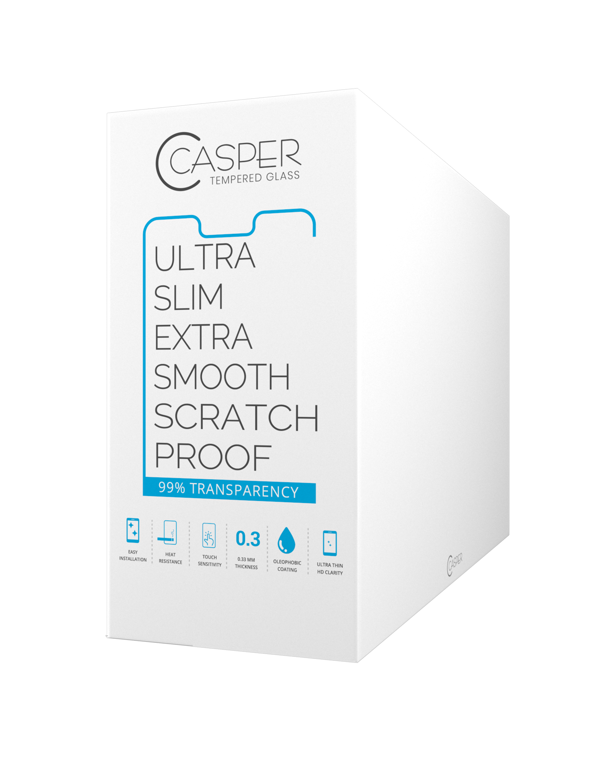 • The Casper Tempered Glass also has an Oleophobic surface treatment for an ultra-clear smooth finish.